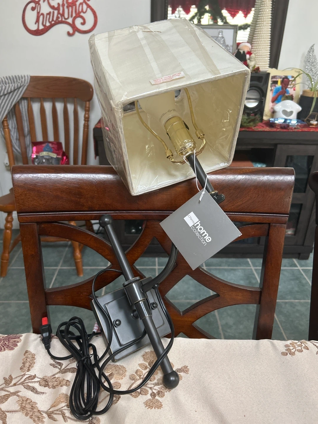 Selling a brand new Home Collection table lamp, still in its original packaging! It features a classic design that would look great in any room. The lamp has a square shade and a sturdy base. Assembly instructions are included. It's ready to brighten up your space!