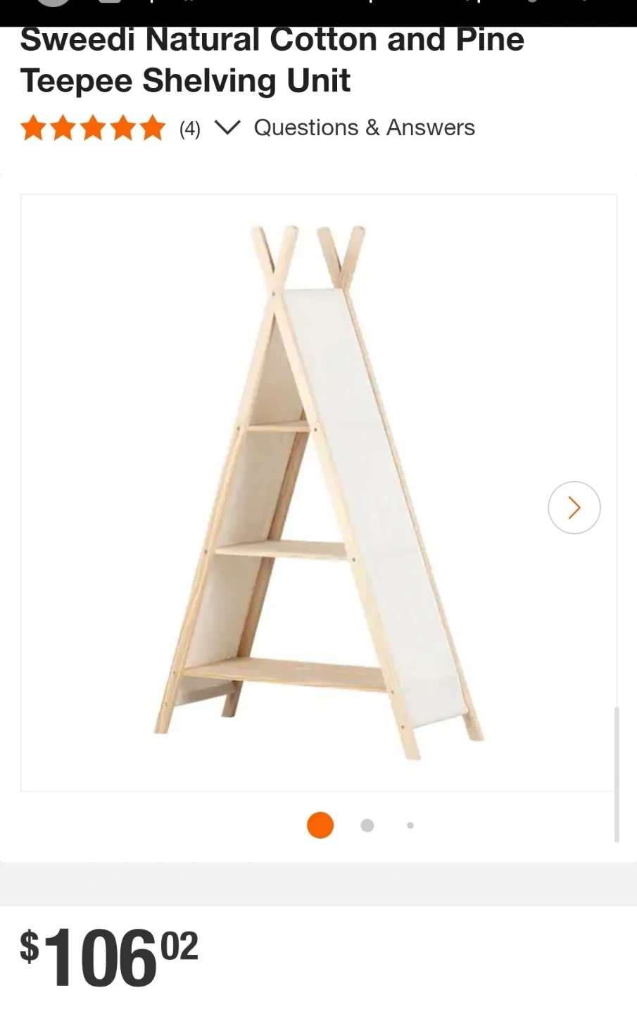 Selling a Sweedi teepee shelving unit! It's made of natural cotton and pine.