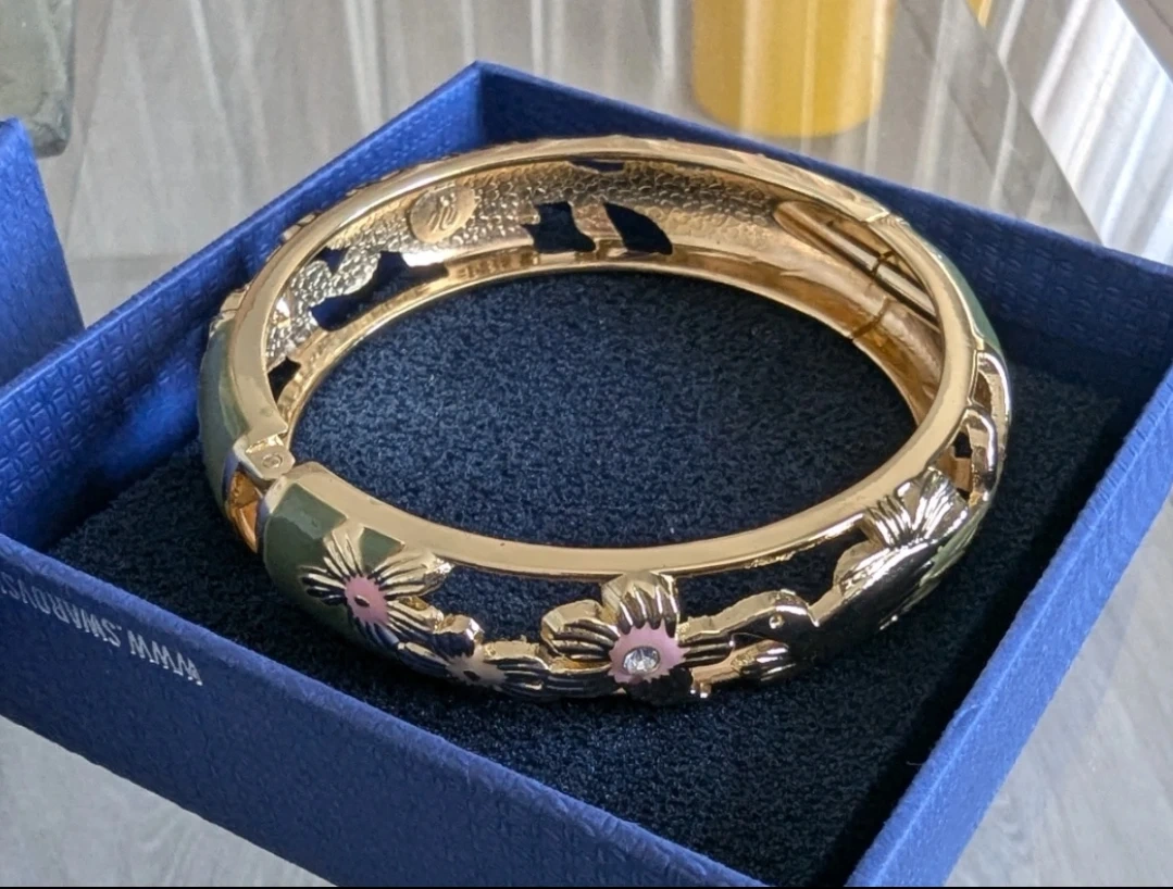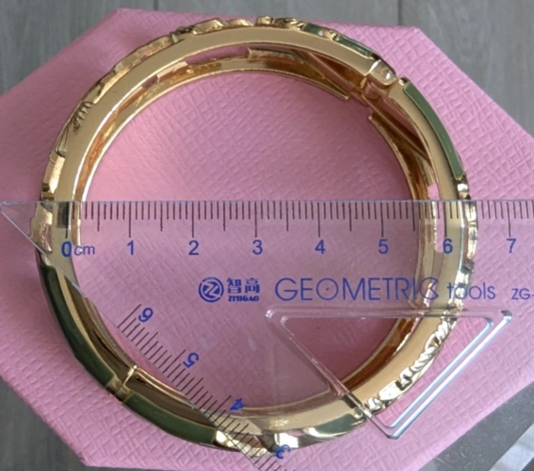 Enhance your jewelry collection with this stunning, intricately carved metal bracelet. Its detailed design and elegant appearance make it a standout piece for any occasion.