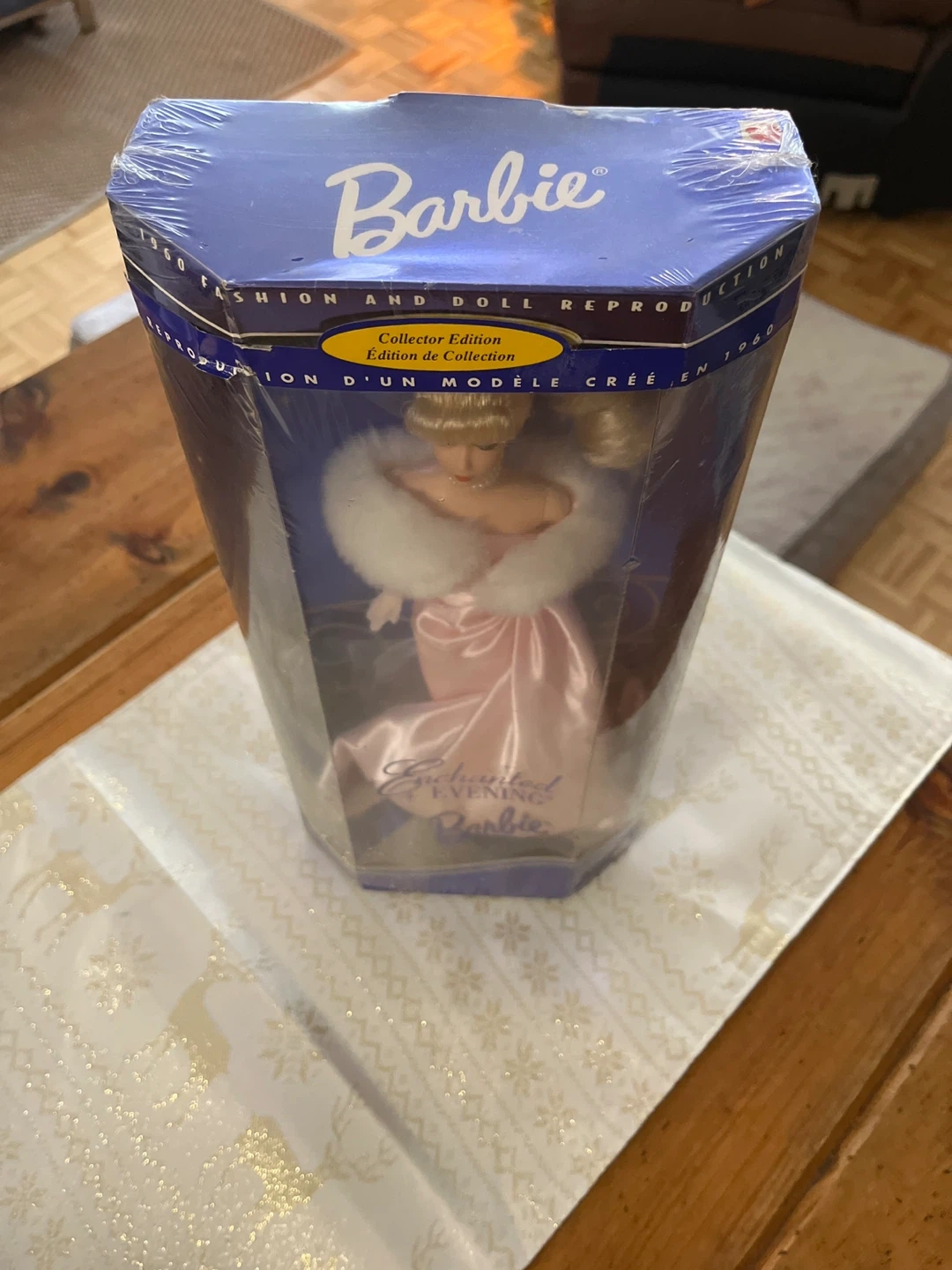 Selling a 1995 Mattel Collector’s Edition Enchanted Evening Barbie Doll, new in box and rare.