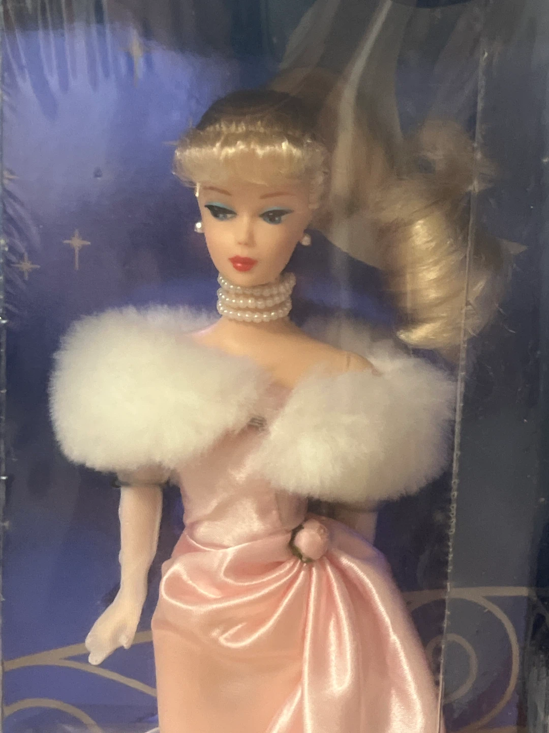 Enchanted Evening Barbie is dressed in an elegant formal gown with classic mid-90s styling, detailed fabric, and refined accessories. This edition reflects the glamour-focused collector Barbies of the era and has become increasingly difficult to find new in box.