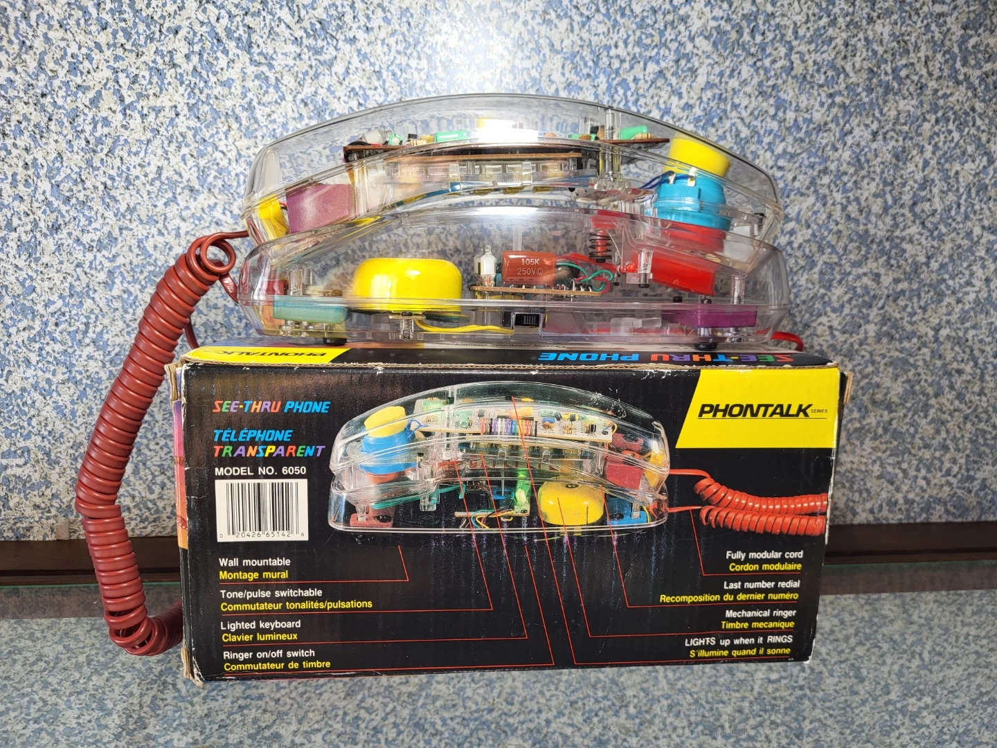 Selling a Phontalk See Thru Phone Transparent! It's a clear phone with bright components. The box lights up when it rings! Model No. 6050