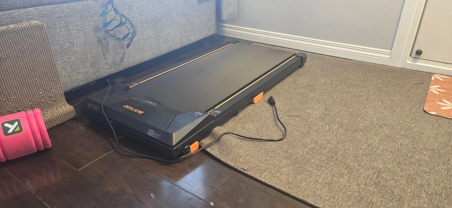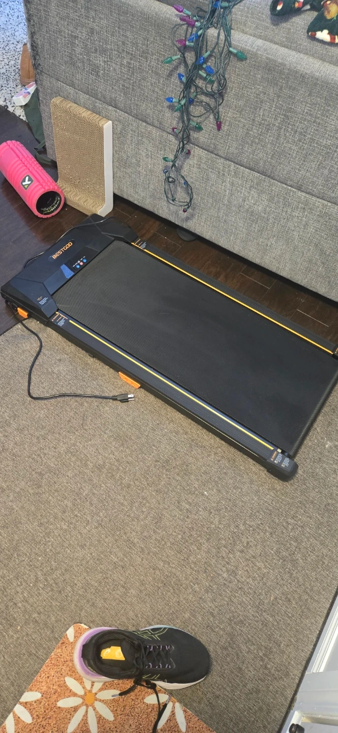 Selling a BESTQOD under desk treadmill. It's perfect for getting some exercise in while you work from home or watch TV! It's lightweight and portable, so you can easily move it around the house. Comes with a power cord, remote, and pad lubrication.