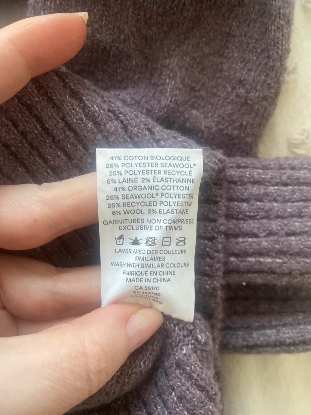 Organic cotton, seawool poly, recycled polyester & cruelty free wool