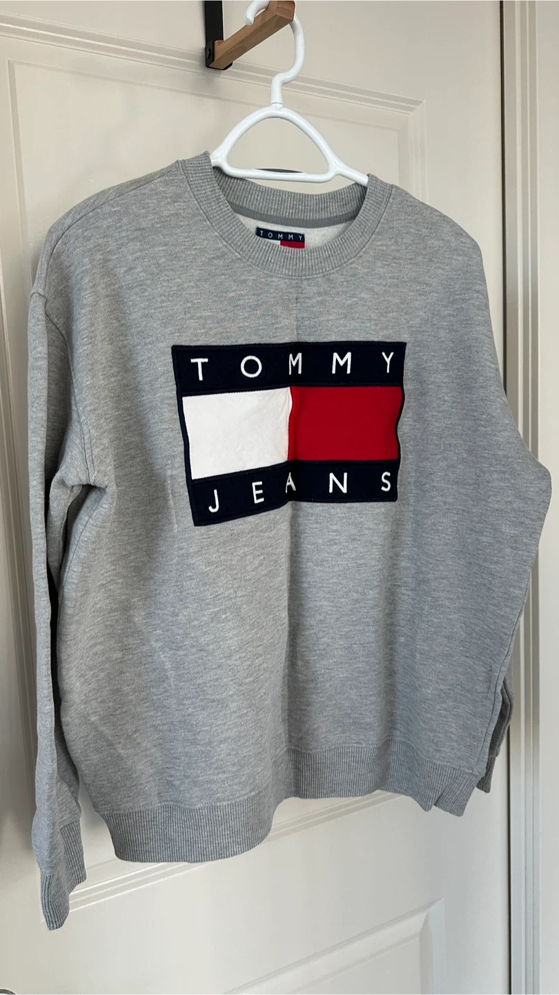 Selling a Tommy Jeans grey sweatshirt in size L. It's in great condition and ready for a new owner!