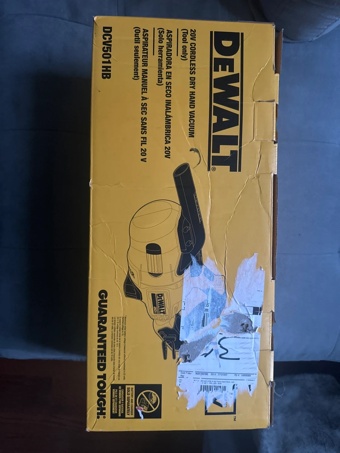 Selling a DeWalt 20V cordless dry hand vacuum (tool only). It's the DCV501HB model and comes in its original box. This is a great tool for quick cleanups!