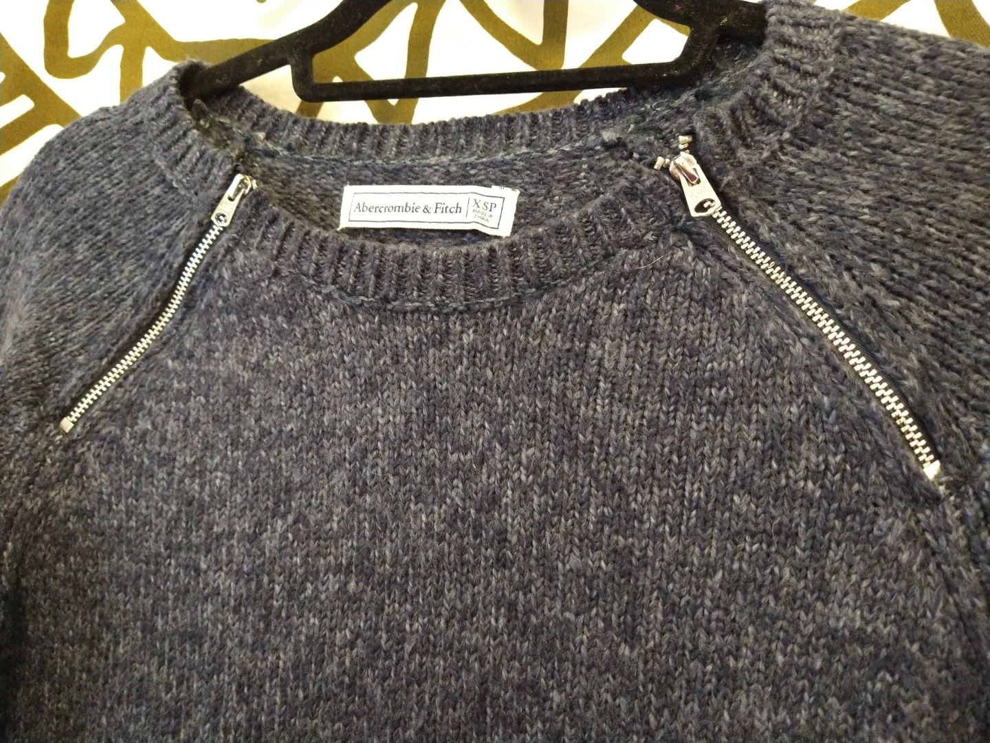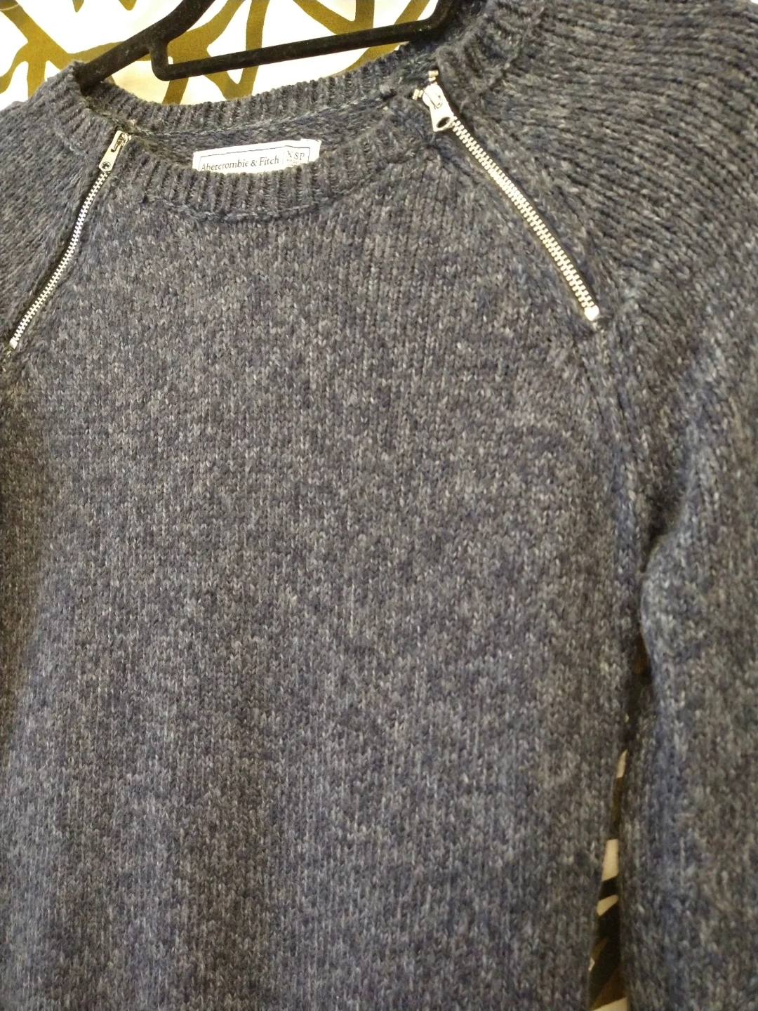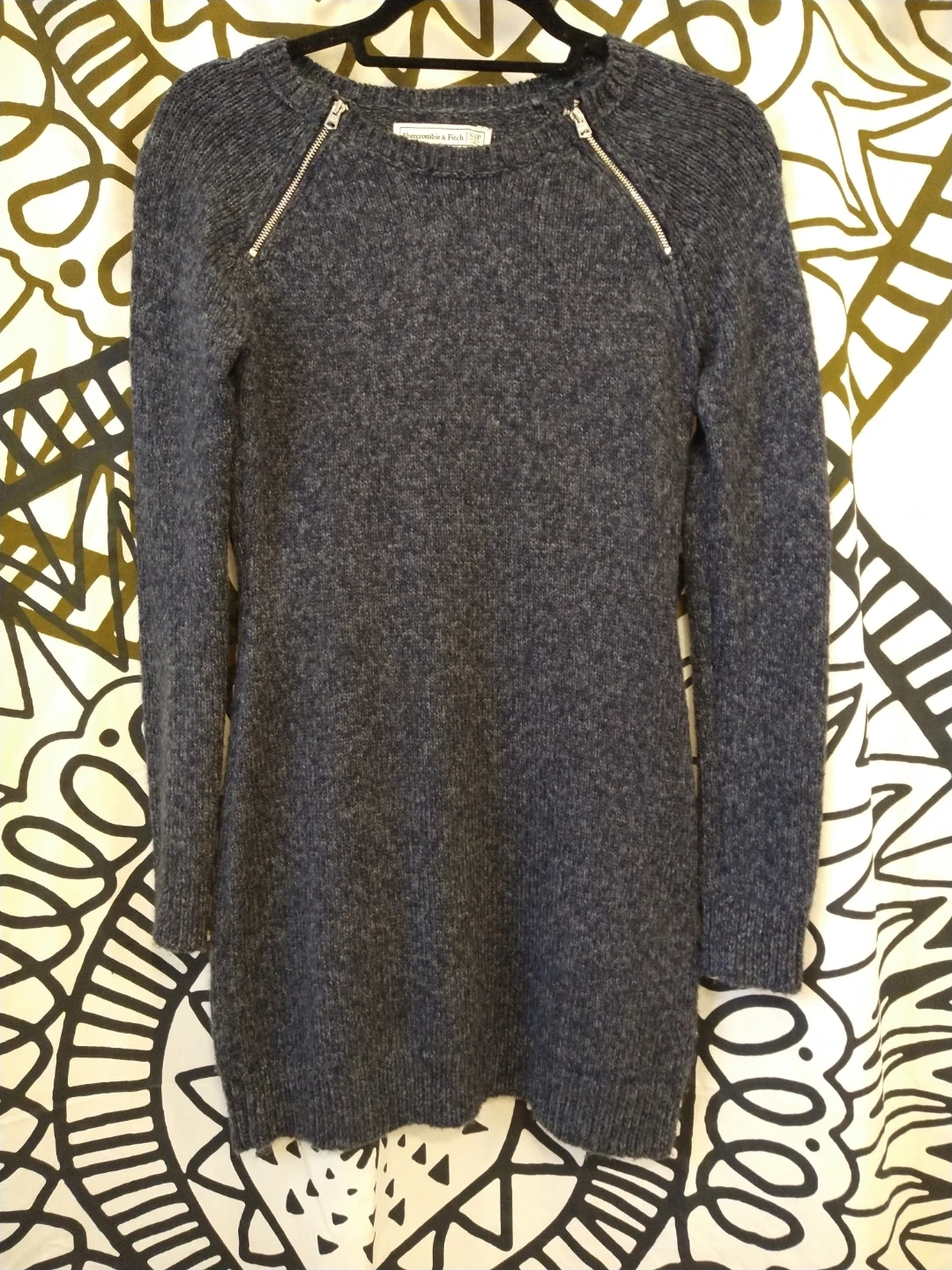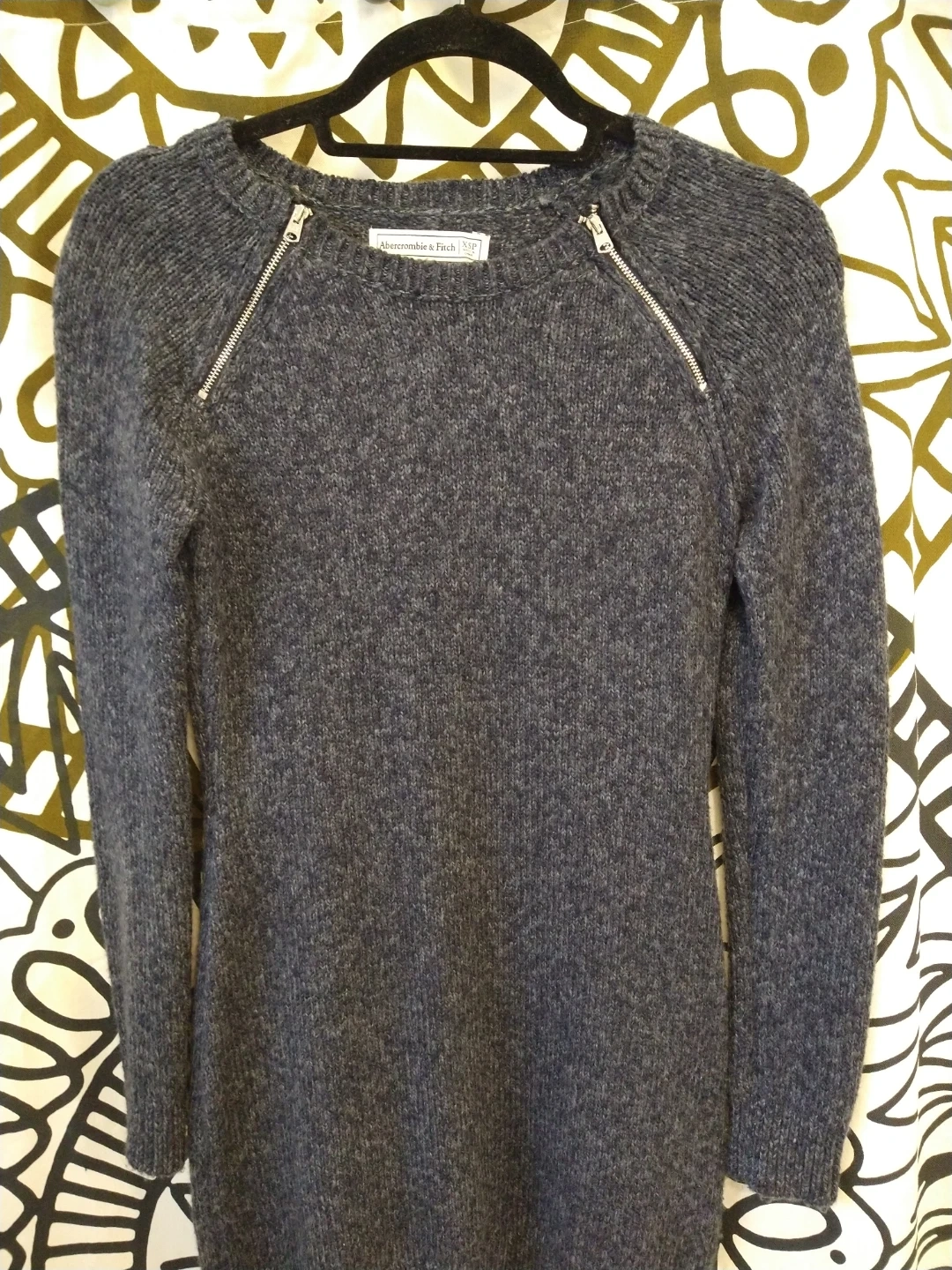 Selling an Abercrombie & Fitch Dark bluish gray sweater dress. It's in great condition and a size XS. It has zippers on the shoulders. Very warm perfect for this time of year!