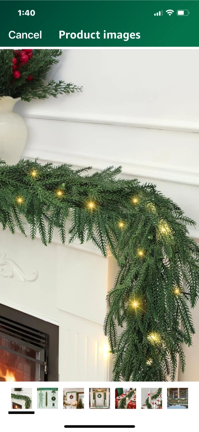 Add some festive cheer to your home with this lovely Christmas garland! It's perfect for draping over a mantel, doorway, or table. The lights add a warm and inviting glow to any space artificial but realistic looking !! I couldn’t return still in packaging