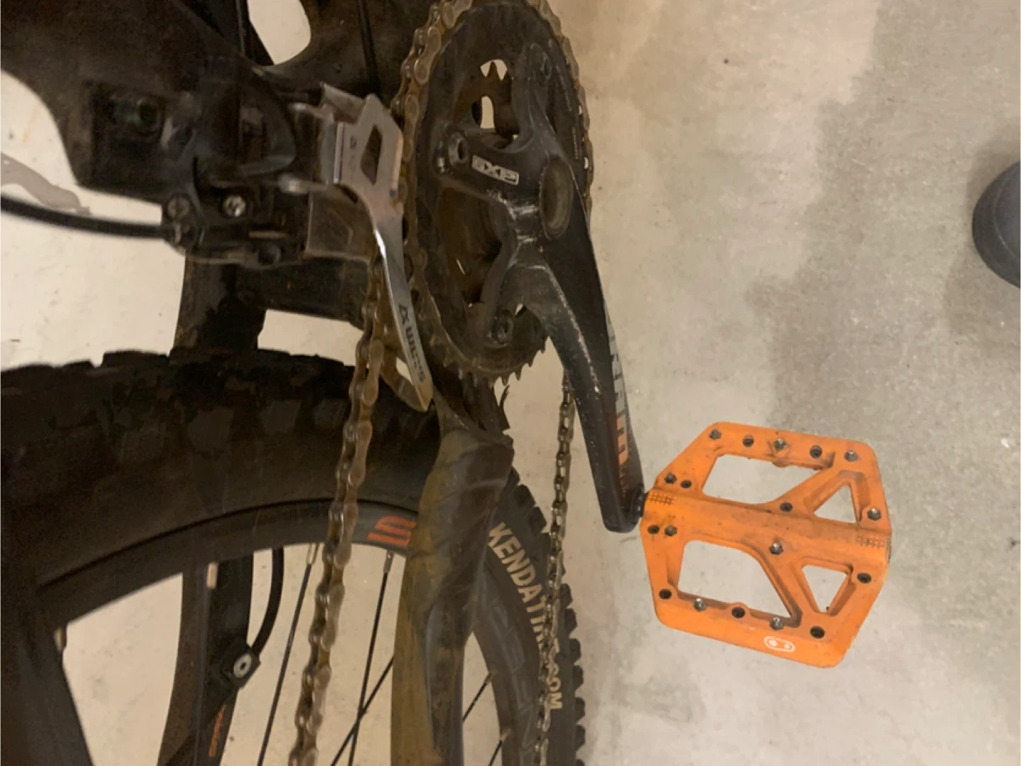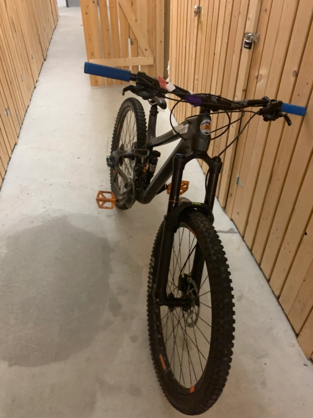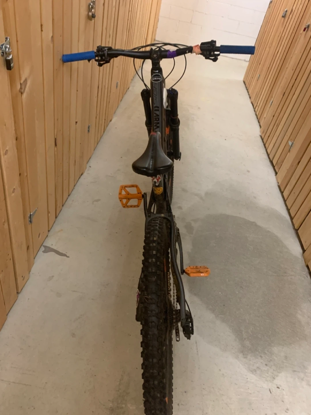 Upgrades.blue grips orange peddles medal studded new back tire and tred.theres a little rust on chain.