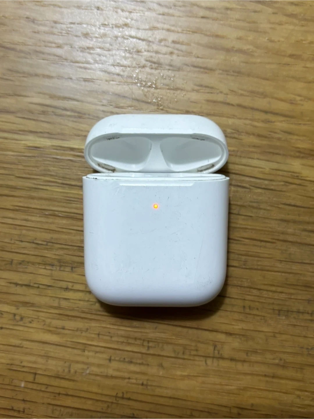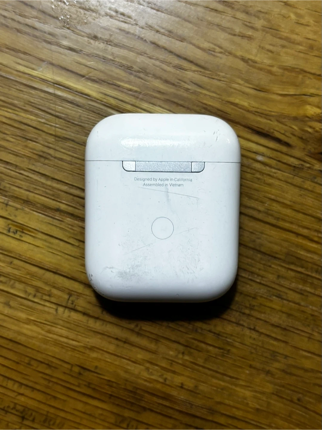 Selling a used Apple AirPods case. It has some visible scratches and signs of wear, but is still fully functional. Perfect as a replacement or spare!