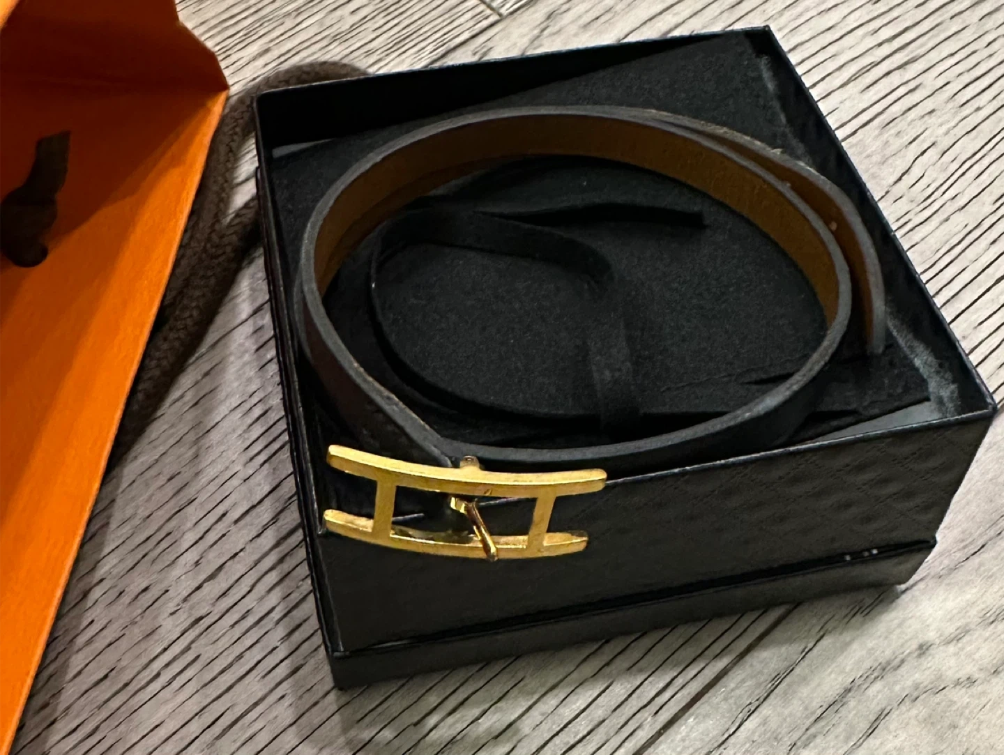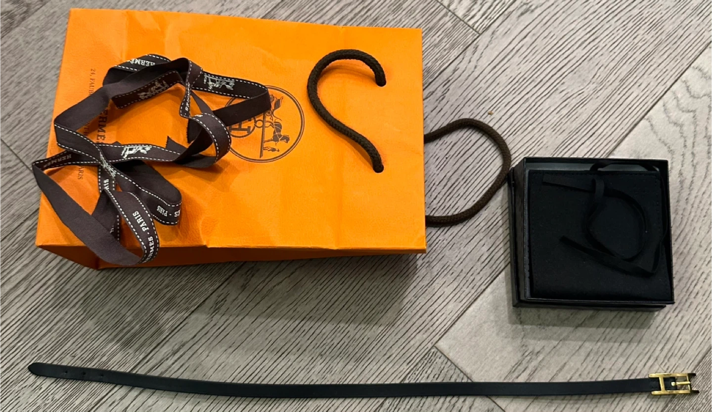 Authentic ❗️Hermès black/Brown leather wrap reversible bracelet. It features a gold-tone buckle. Comes with the original bag
