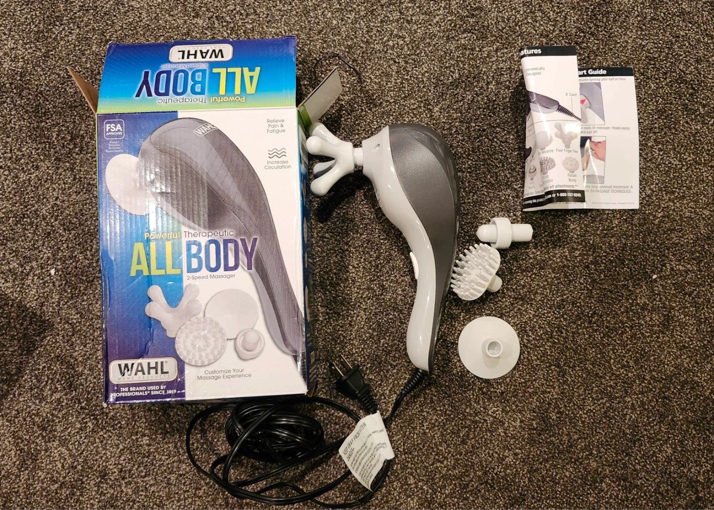 I'm selling a Wahl All Body 2-Speed Massager. It comes with the box and all the included components, including the different attachments! It's a powerful therapeutic massager that helps relieve fatigue and increase circulation. Customize your massage experience with the various attachments