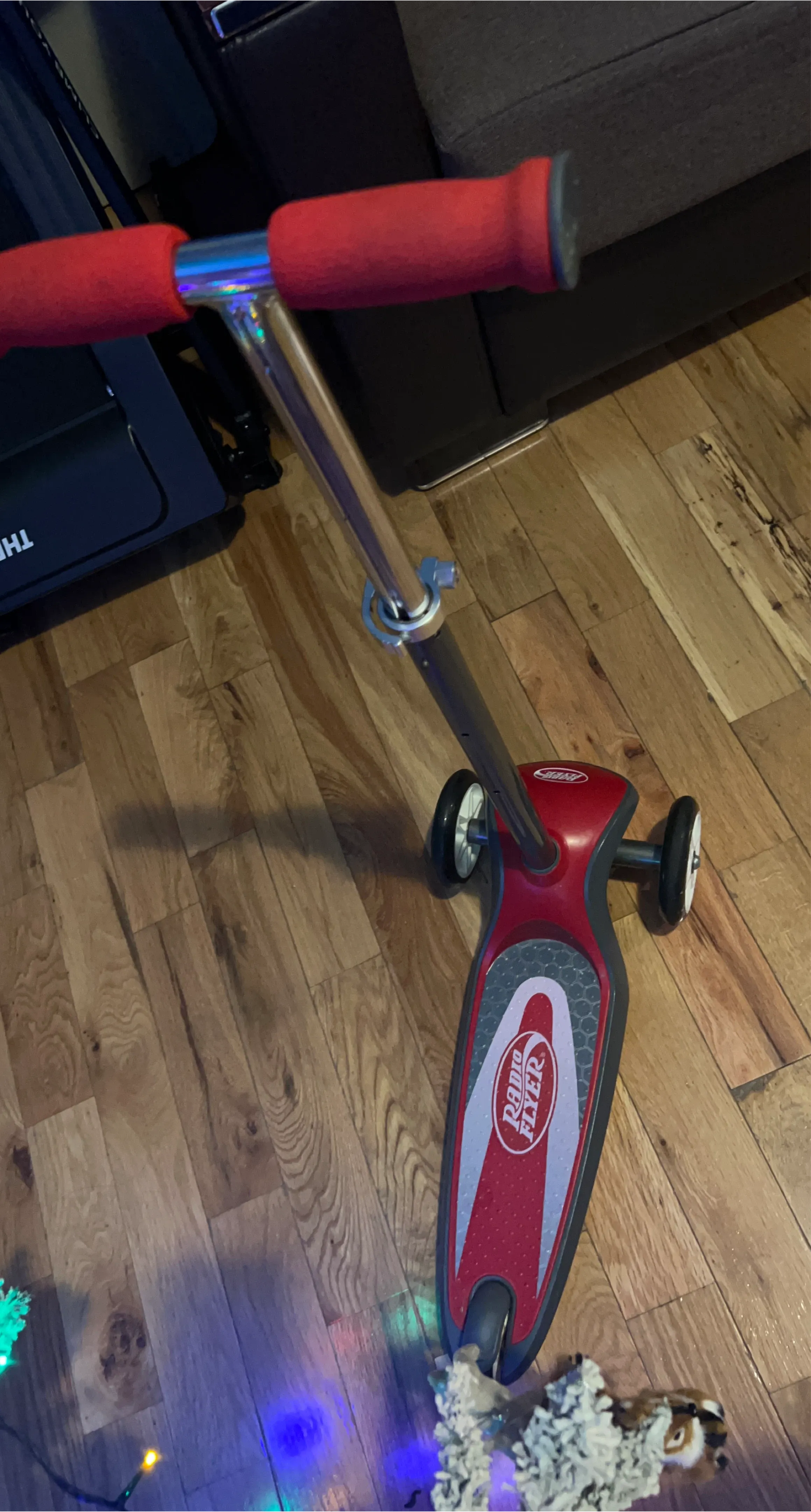 Selling a Radio Flyer Lean 'N Glide Scooter! It's in good condition and ready for a new rider. The scooter features a red and silver design with a three-wheel configuration for added stability.
