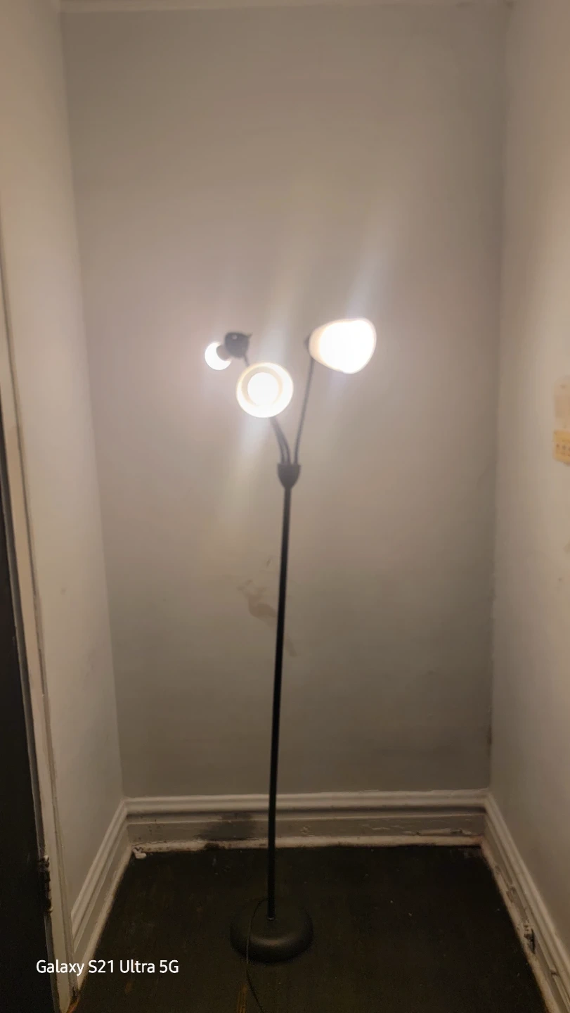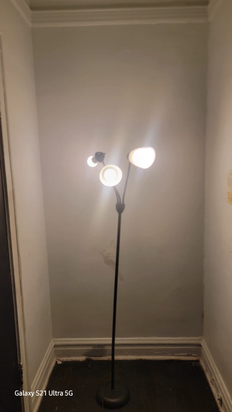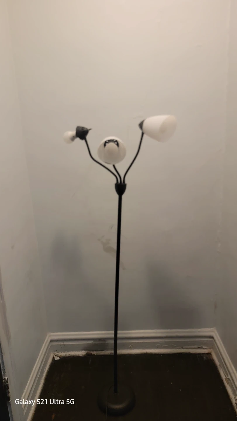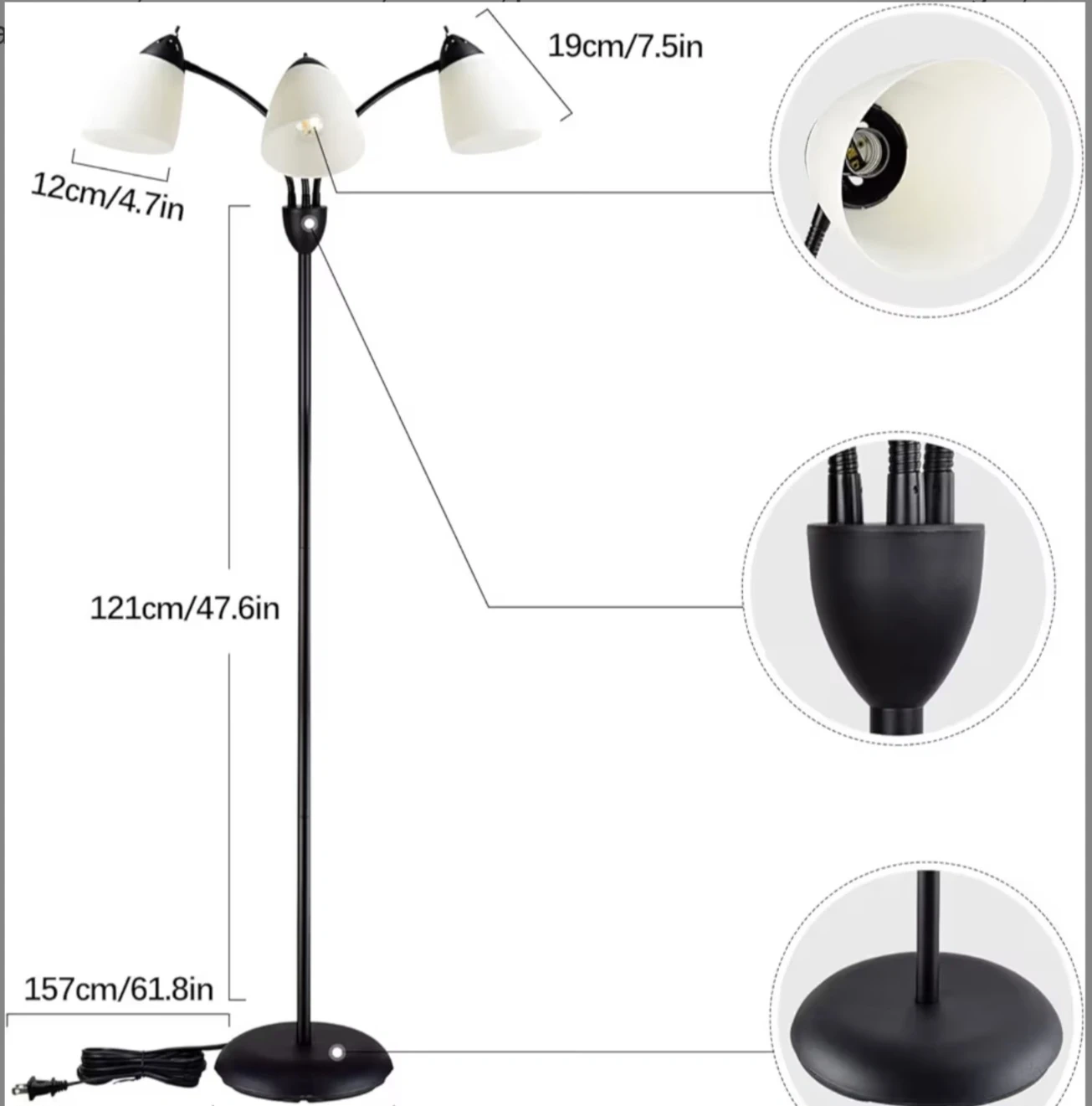 This is a stylish 3-light tree floor lamp with a black finish. It stands at approximately 61.8 inches tall. The lampshades have a unique design, and the lamp provides ample lighting for any room
