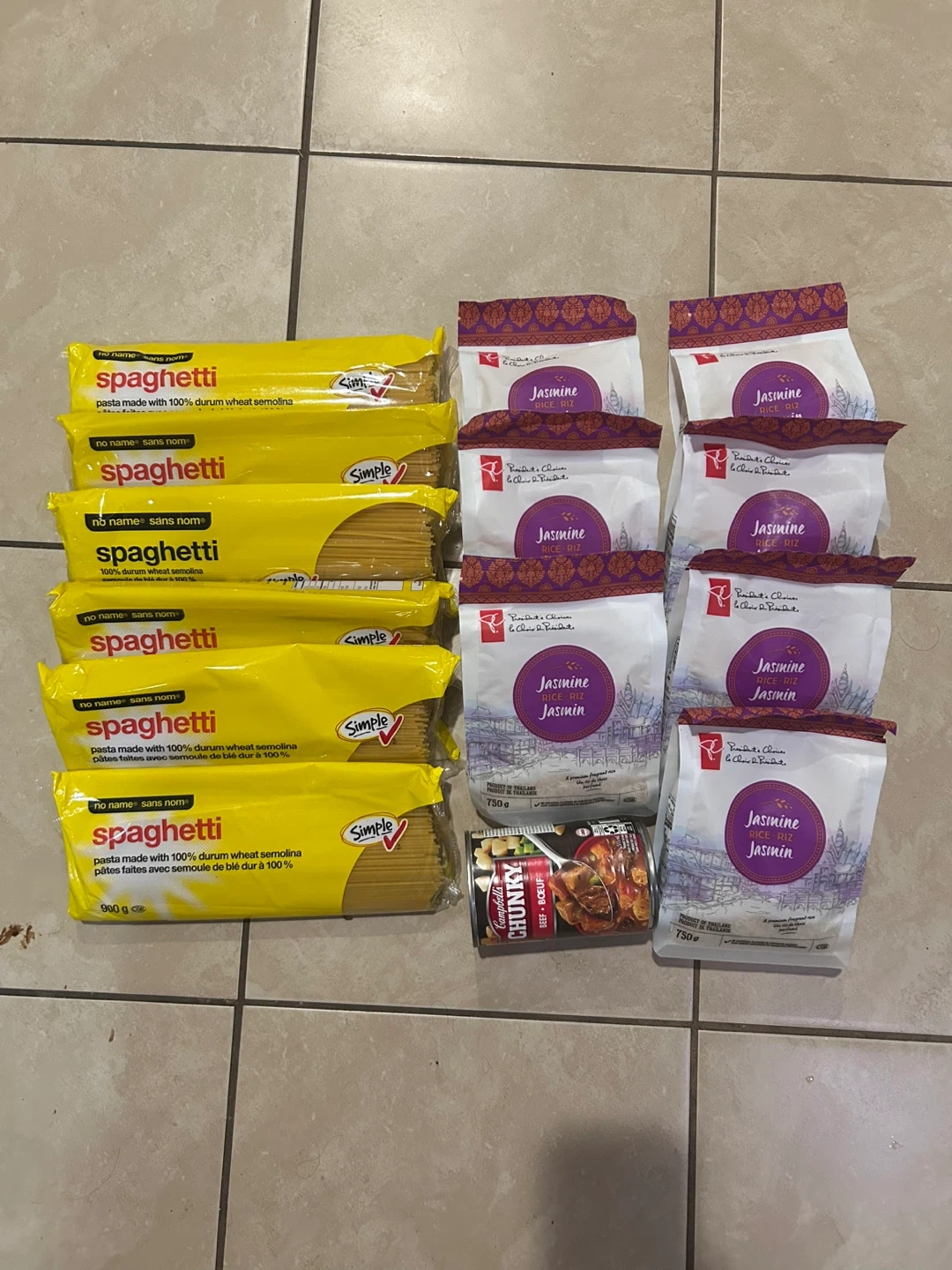 I'm giving away a bundle of pantry staples! Includes No Name spaghetti, President's Choice Jasmine Rice, and Campbell's Chunky Beef soup