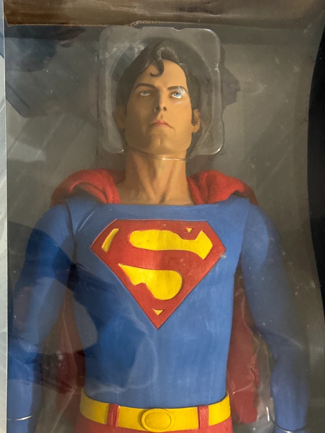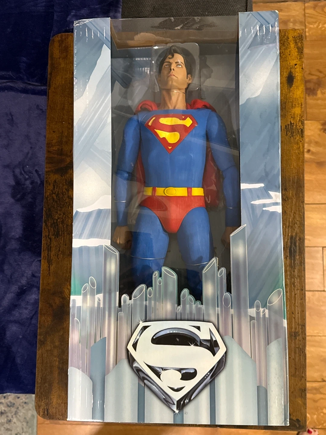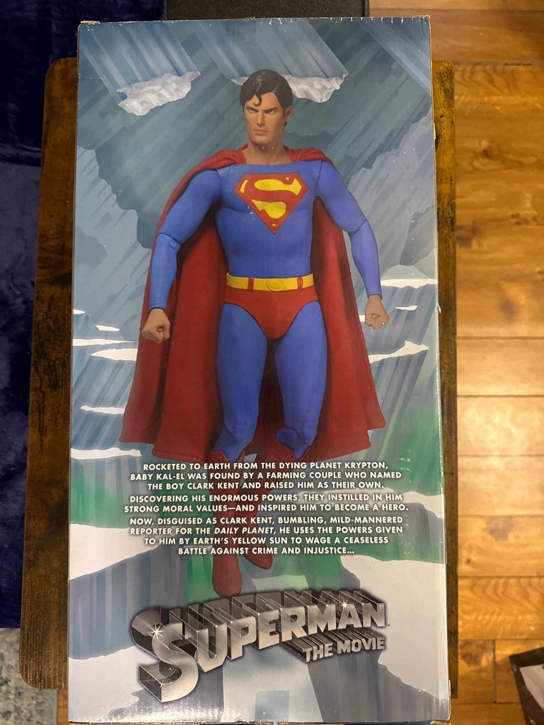 Superman The Movie action figure. It's still in its original box! The box has some minor wear, but the figure itself is in great condition. This is a great collectible for any Superman fan