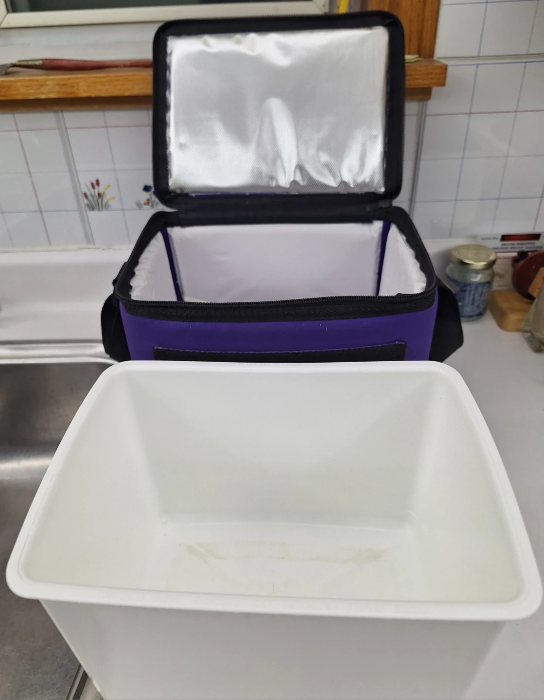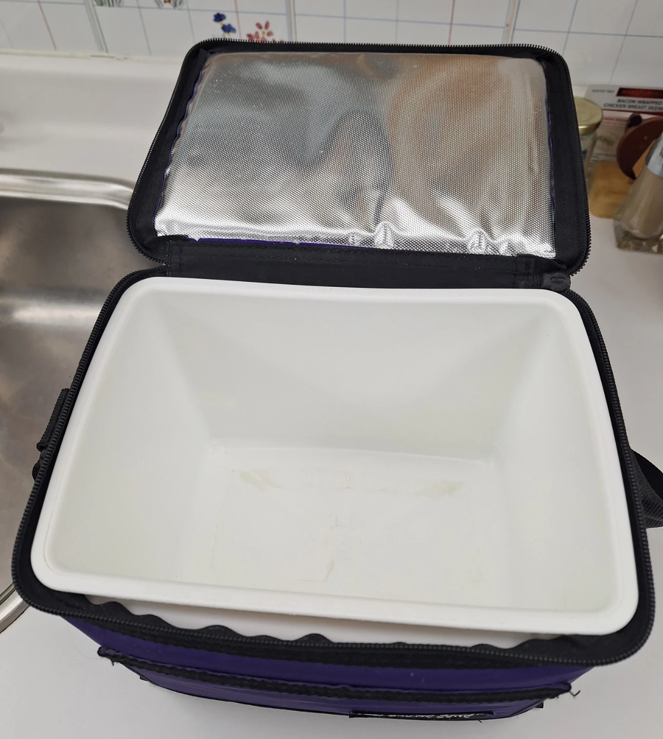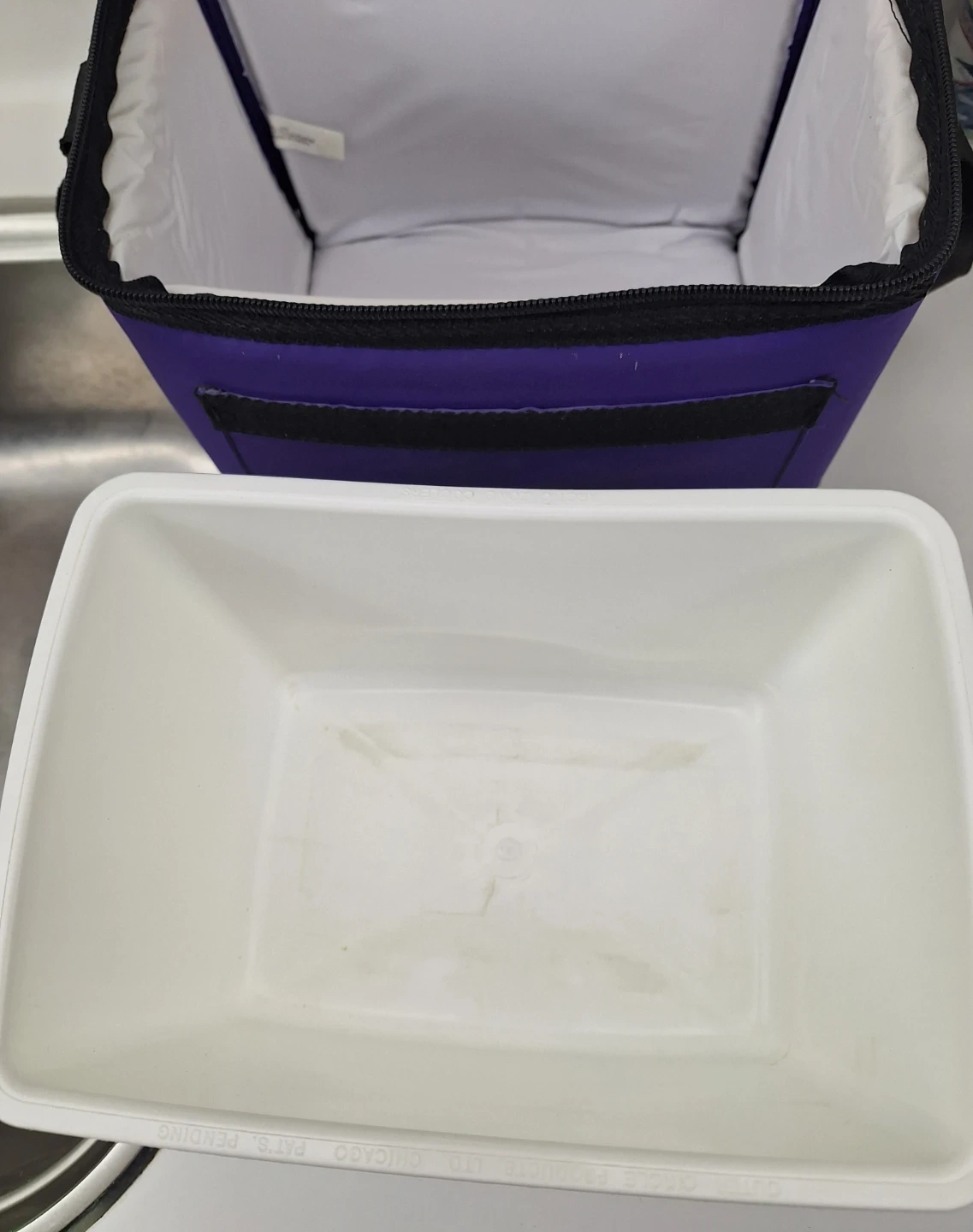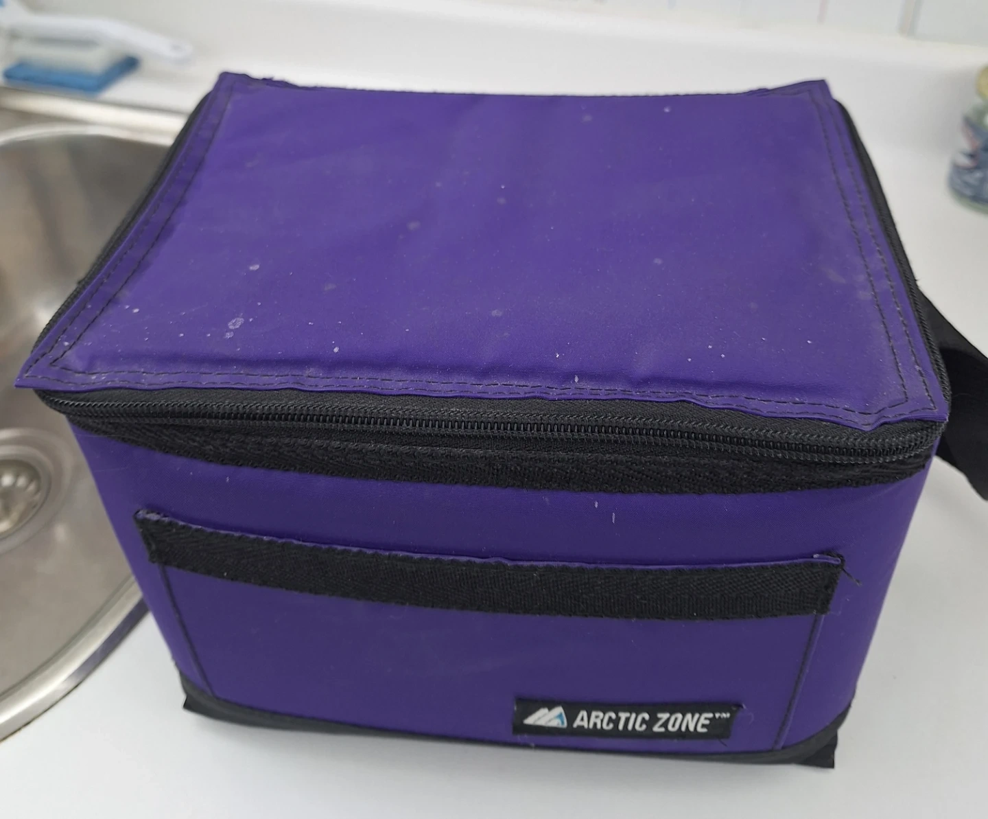 Arctic Zone purple lunch bag. Has a removable hard plastic insert. Can be used with or without insert. Measures 9" x 7" x 7". Pickup Scarborough Pharmacy and Ellesmere area