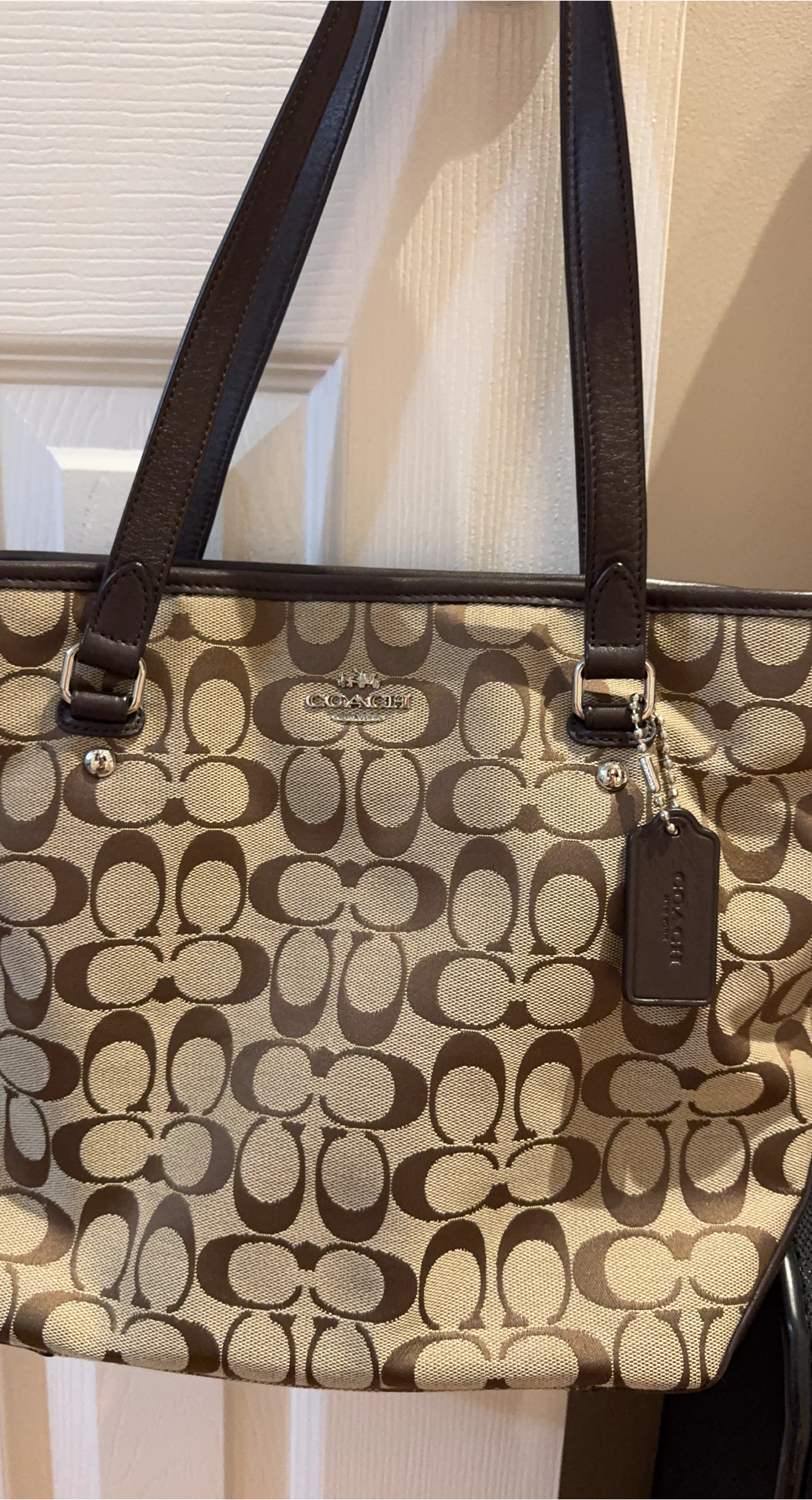 Selling a Coach tote bag with the signature Coach pattern. It's in great shape and ready for a new owner!