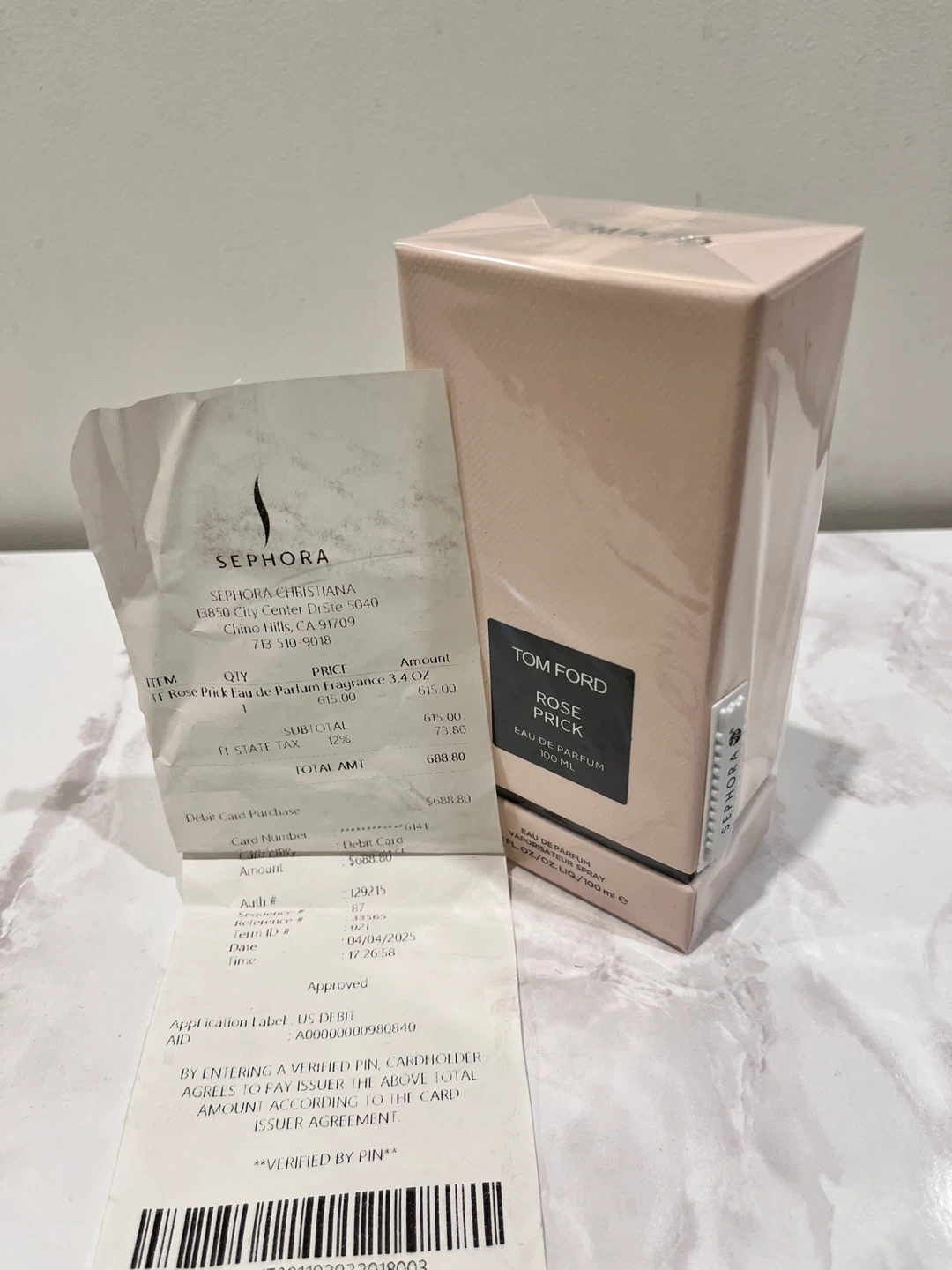 Selling brand new Tom Ford Rose Prick Eau de Parfum, 100 ml. Still in original packaging with receipt.