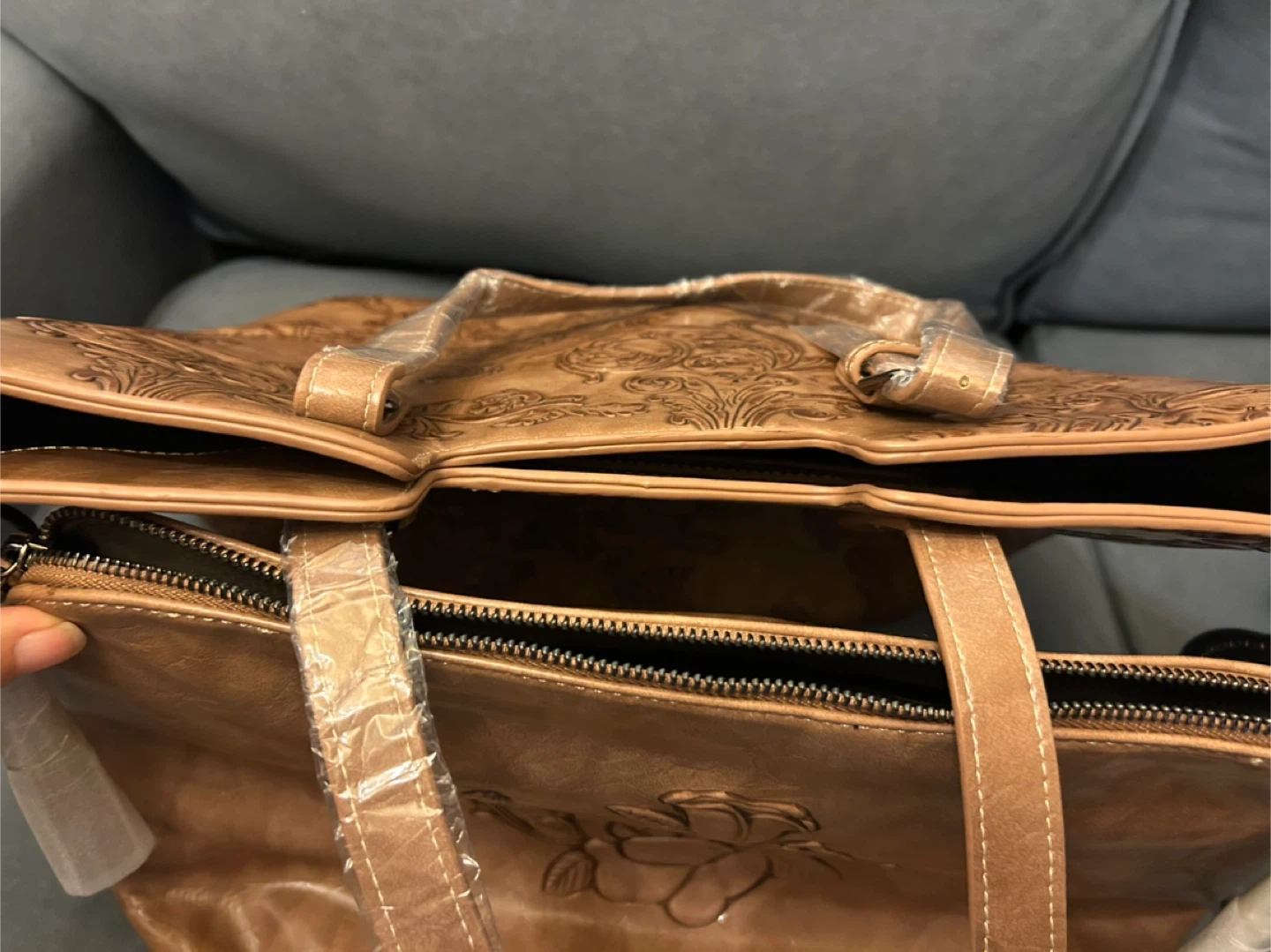 Check out this beautiful Naiture tote bag and clutch set! The tote has a lovely embossed design, and the clutch features a pretty rose design.