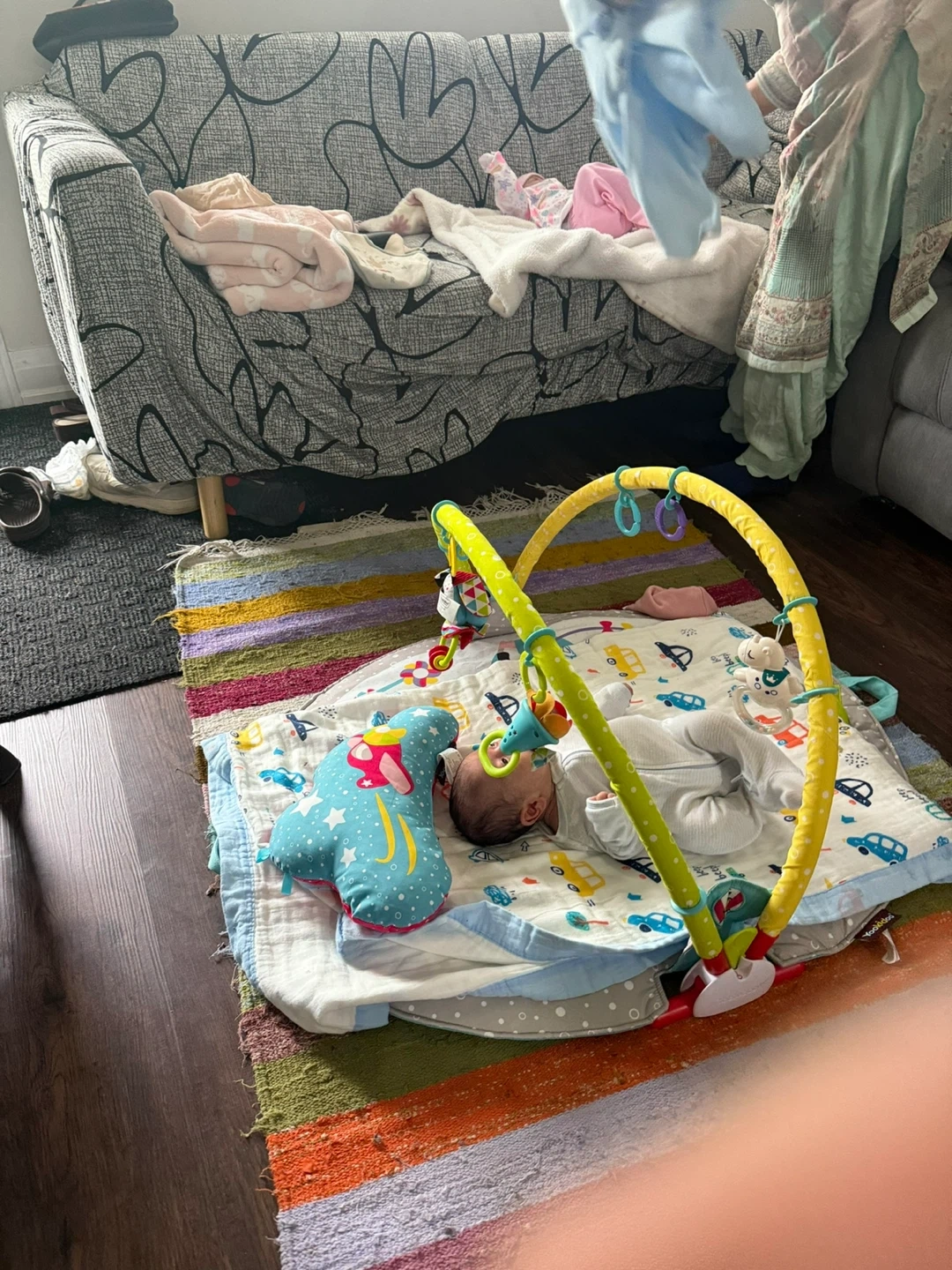 Selling a baby activity gym and play mat. Perfect for tummy time and early development! It's in great condition and ready for a new little one to enjoy