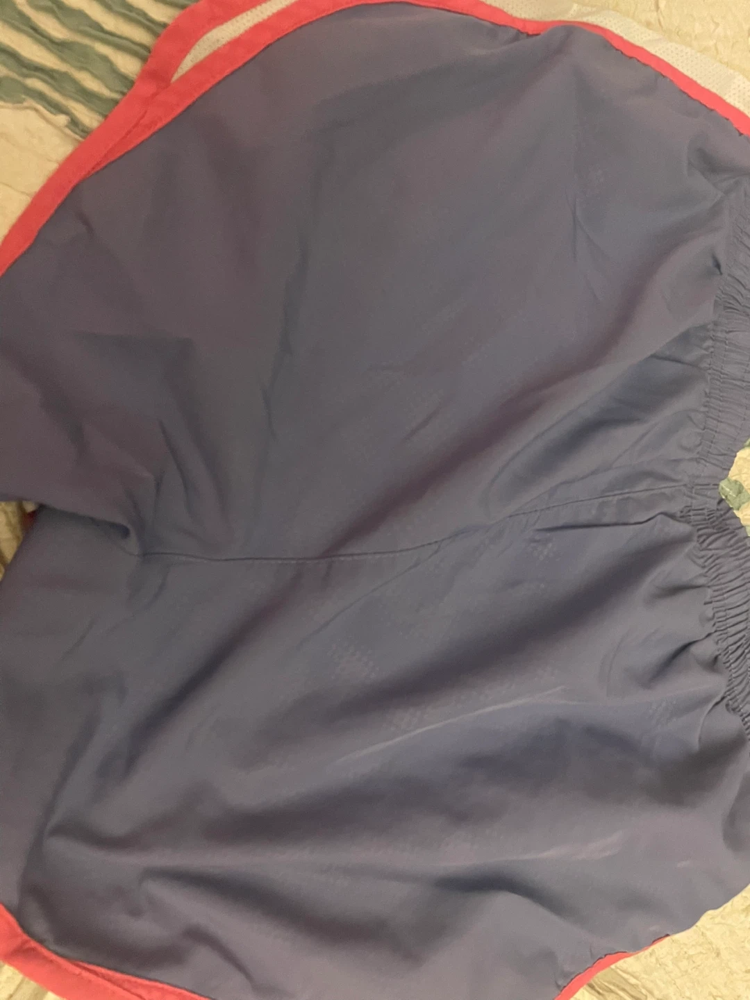 Selling a pair of athletic shorts in good condition. They're a nice blue color with a pink trim. Perfect for running or working out!