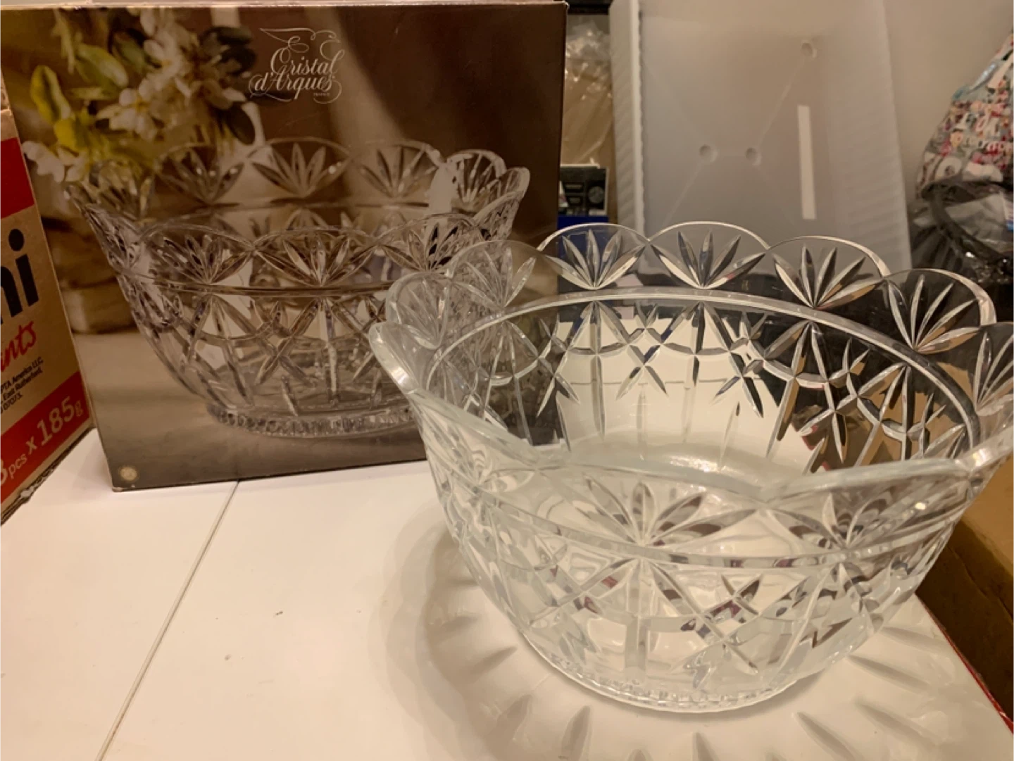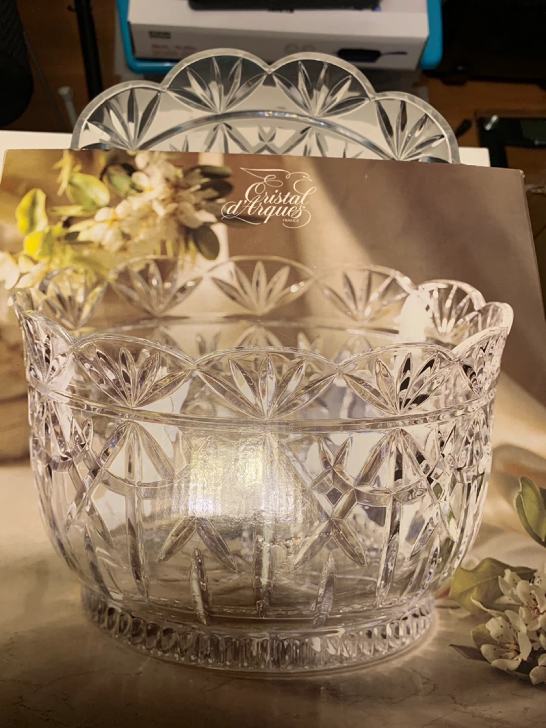 Selling a beautiful Cristal d'Arques crystal bowl! It comes with its original box. 6” h x 10” diameter