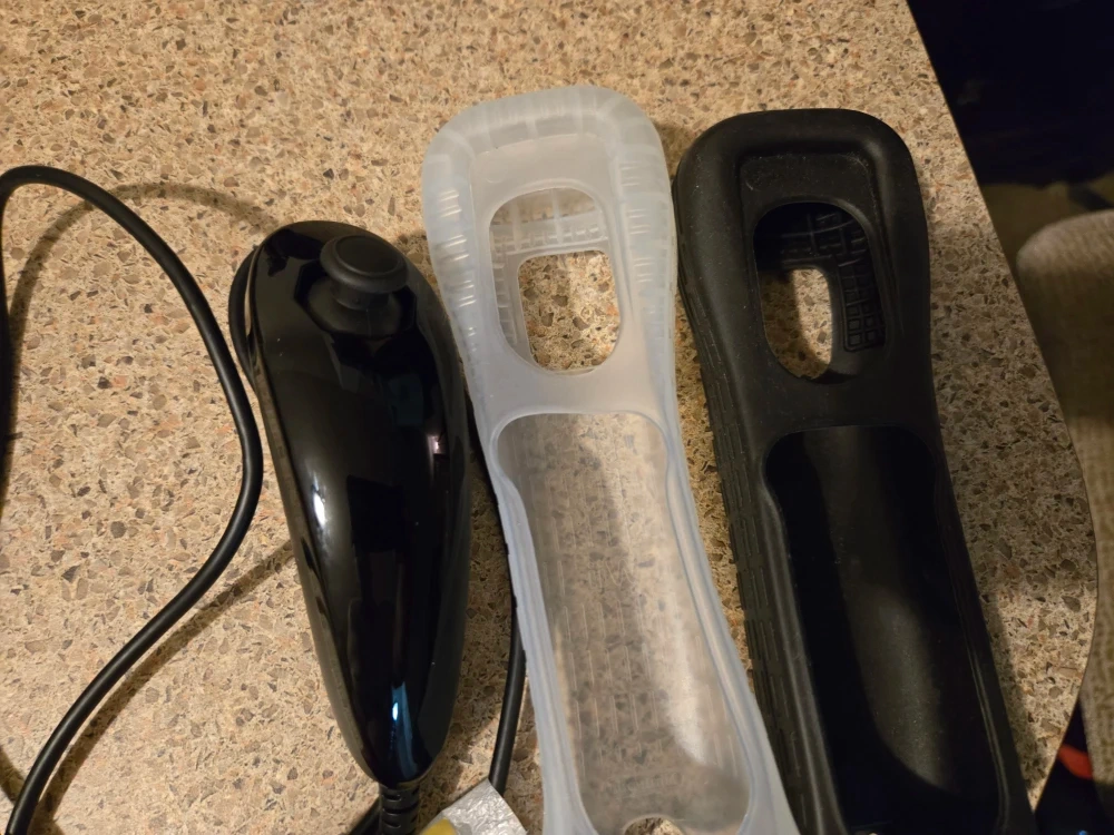 Selling a Nintendo Wii Nunchuk controller. Also included are two wiimote grips, one clear and one black.