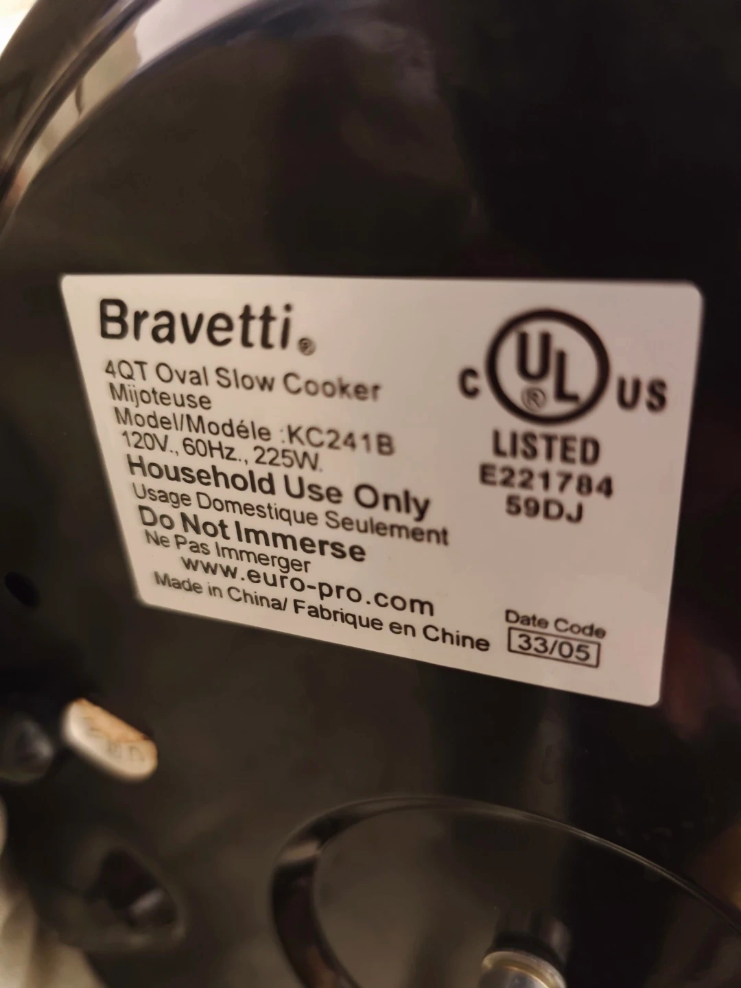 Selling a Bravetti 4QT oval slow cooker, model KC241B. It's in good working condition and ready for your favourite recipes!