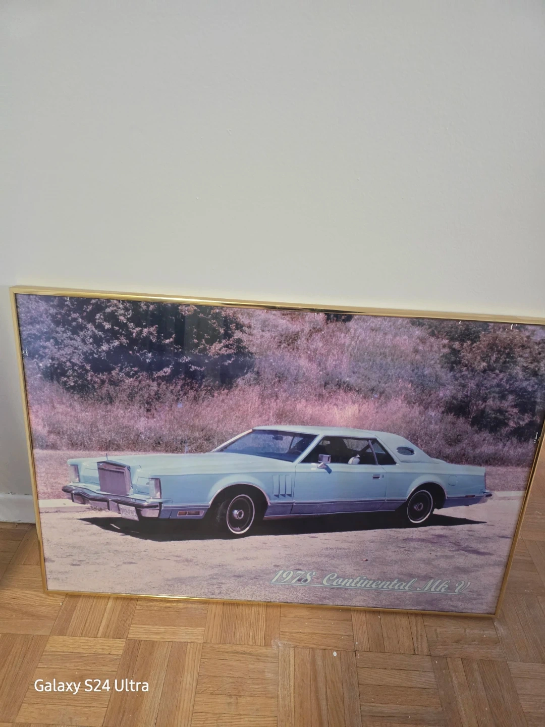 Here's a framed print of a 1978 Continental Mk V. It's a nice piece for any car enthusiast or anyone looking to add a vintage touch to their space