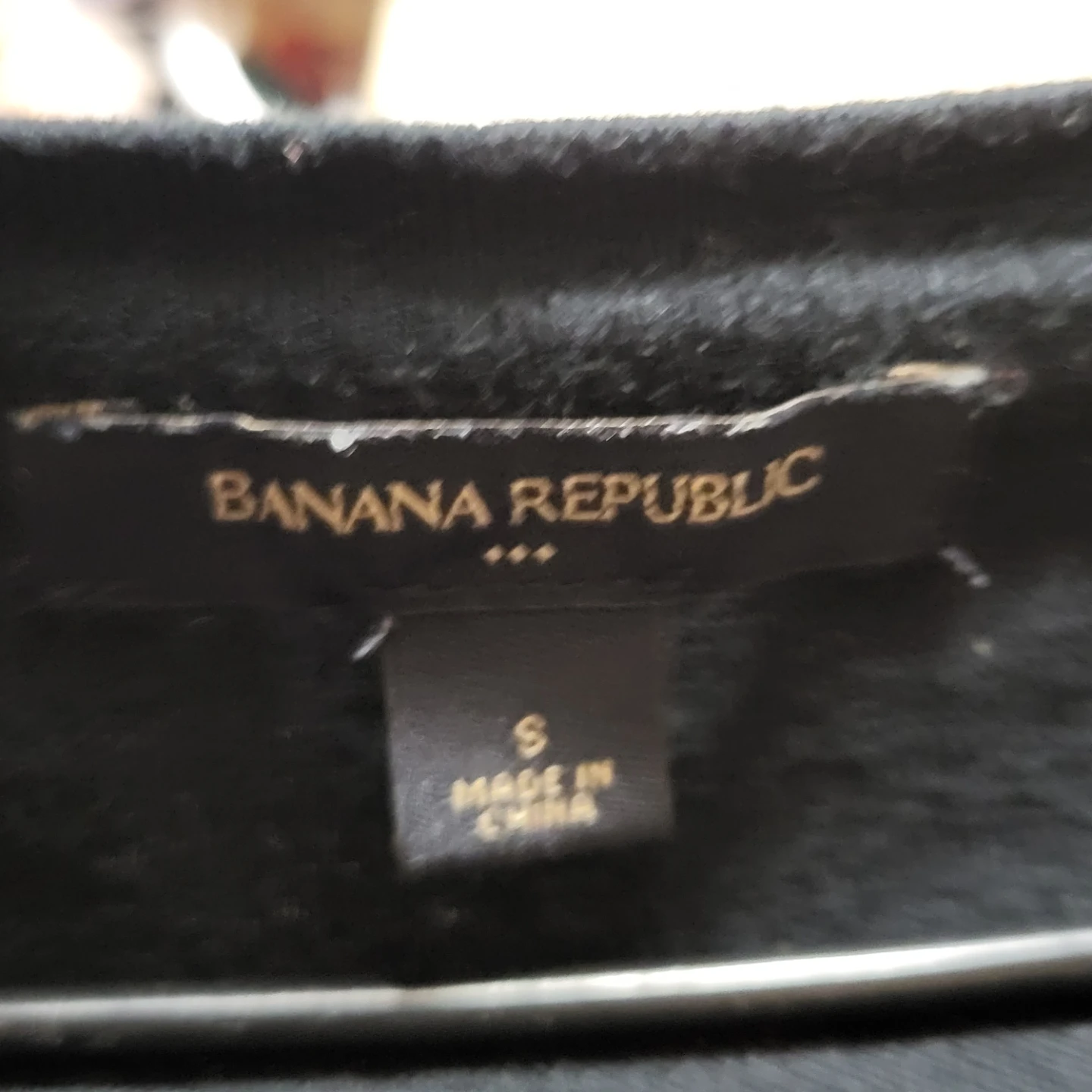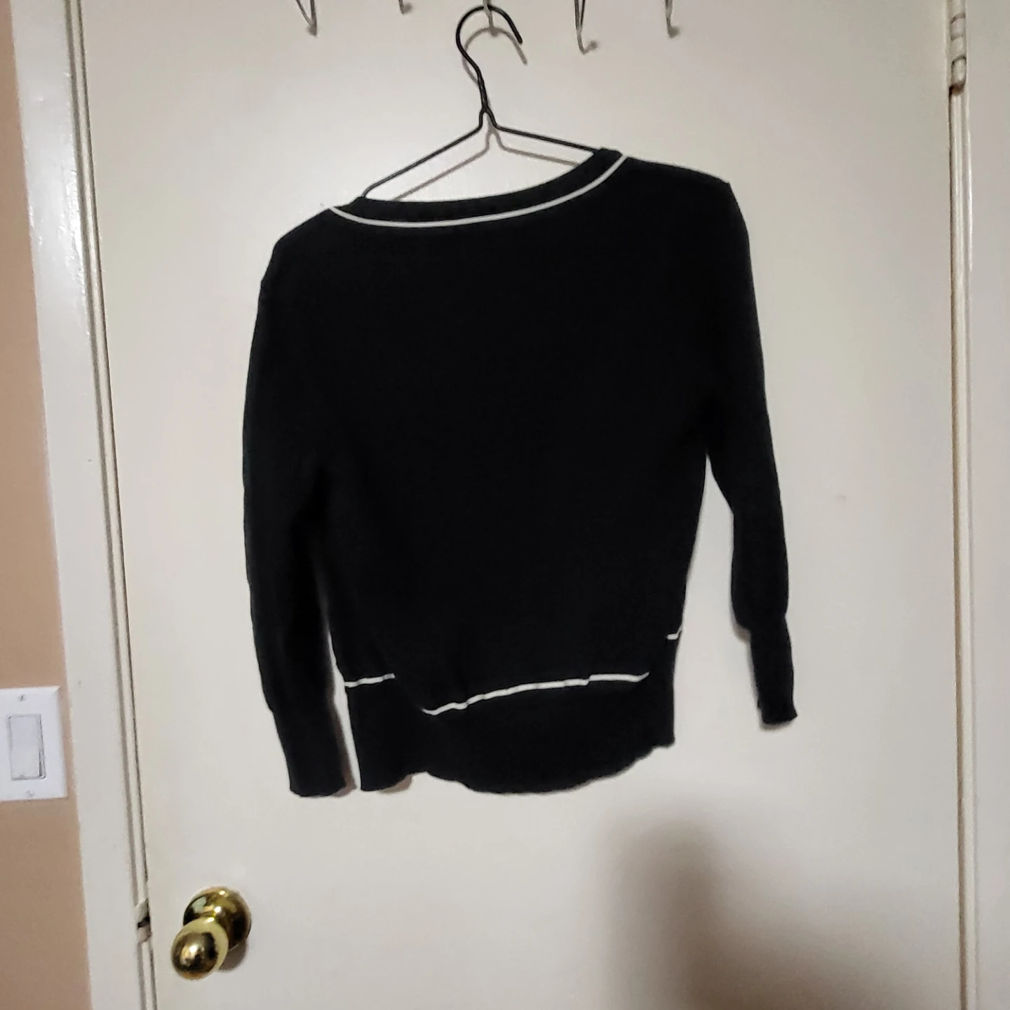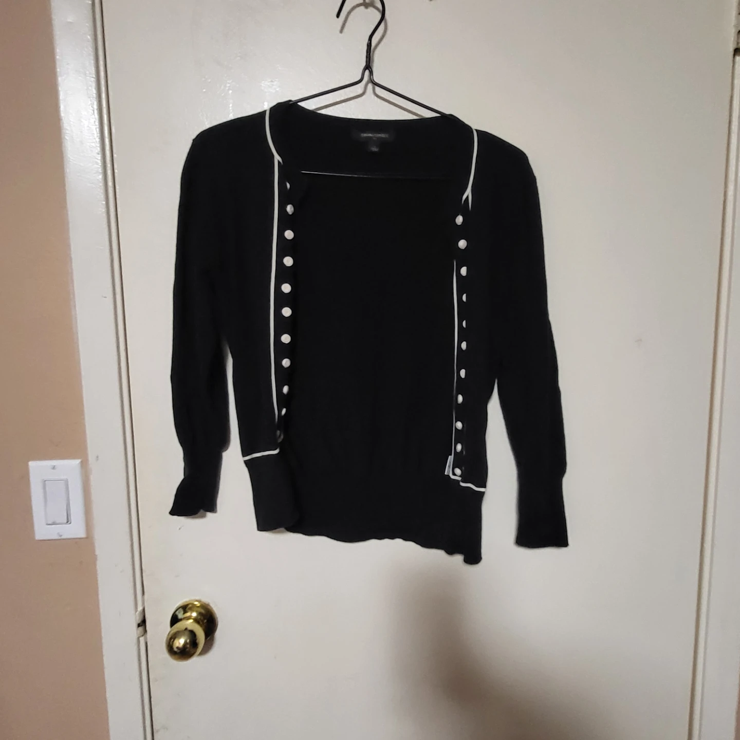 Selling a Banana Republic black cardigan in size small. It's in great condition and features white trim detailing. Perfect for layering!