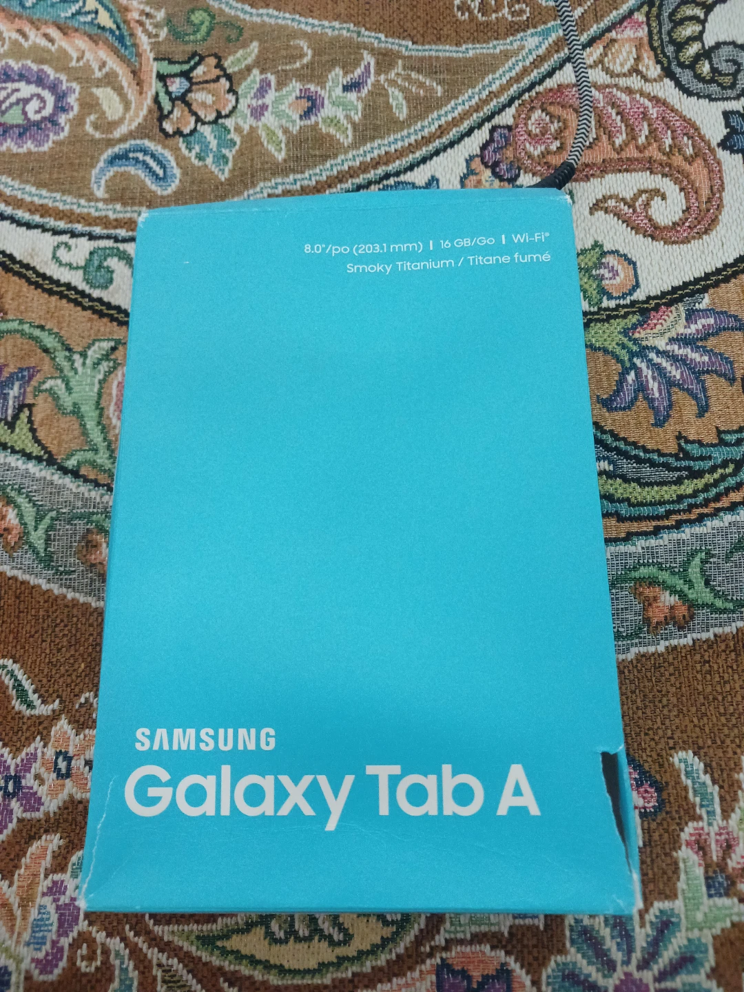 Selling a Samsung Galaxy Tab A in smoky titanium. It's an 8.0 inch tablet with 16GB of storage. Comes with the original box and only wifi and the box itself is kind of damaged but the tab itself is in very good condition. π