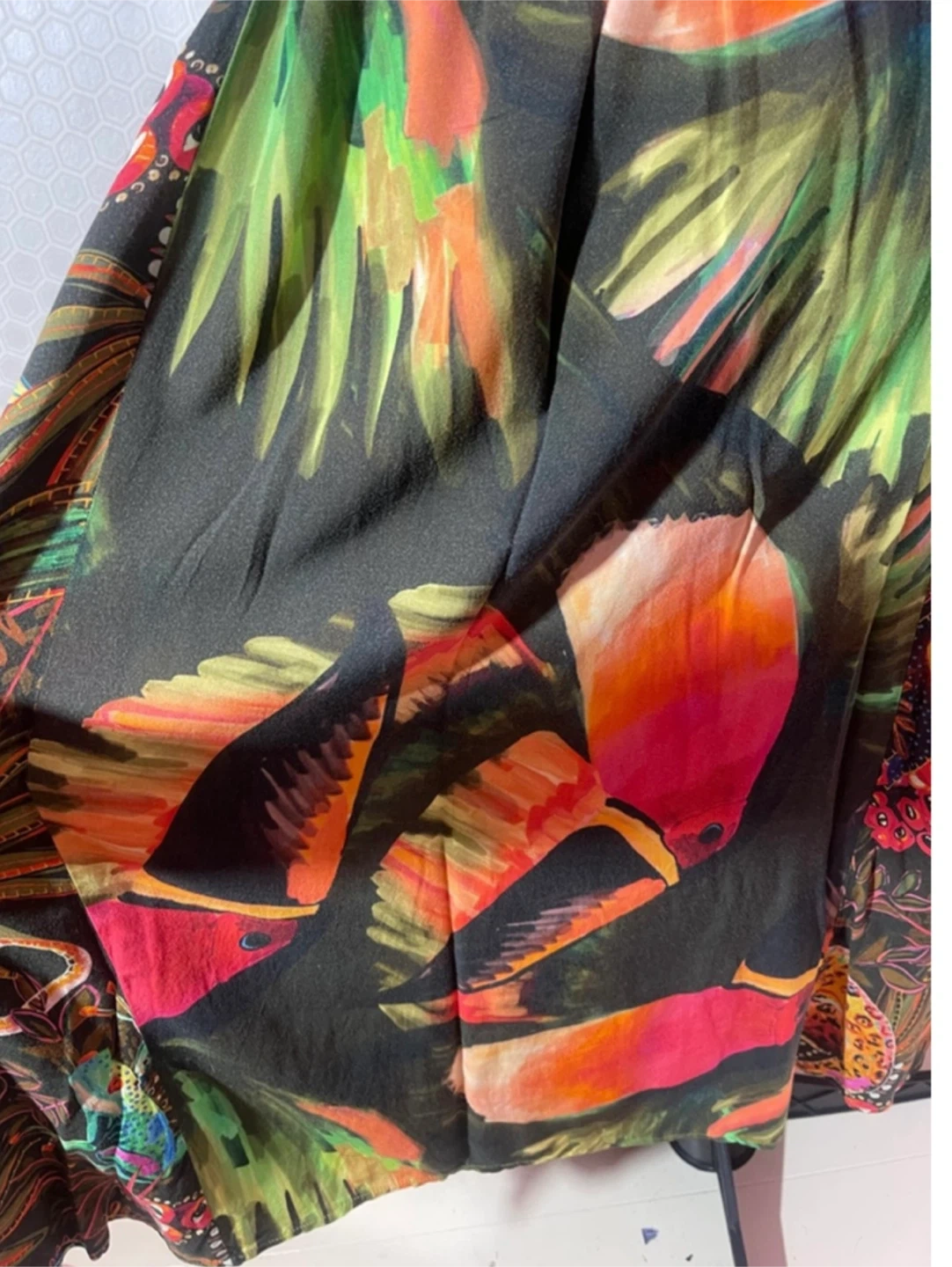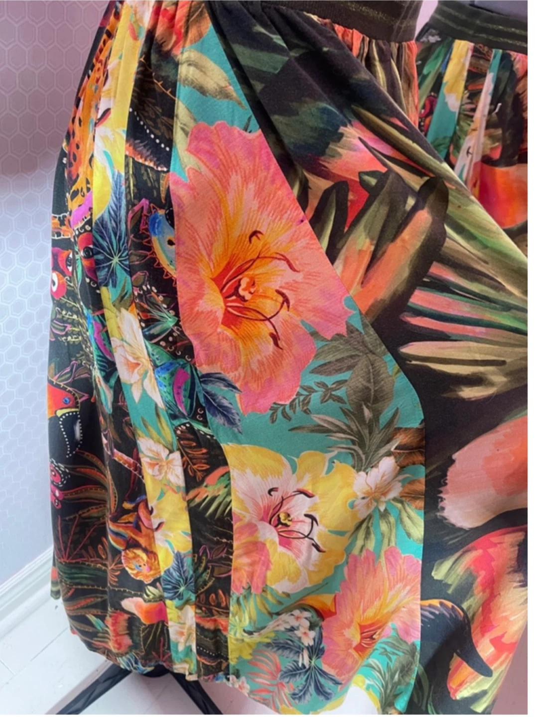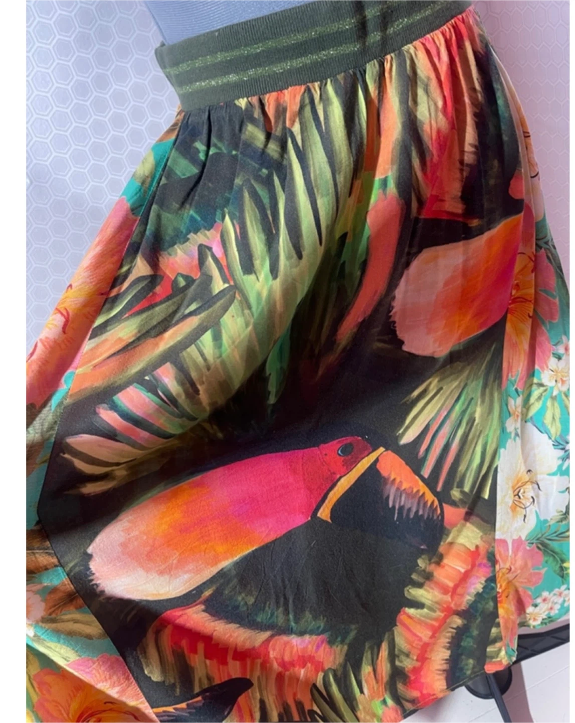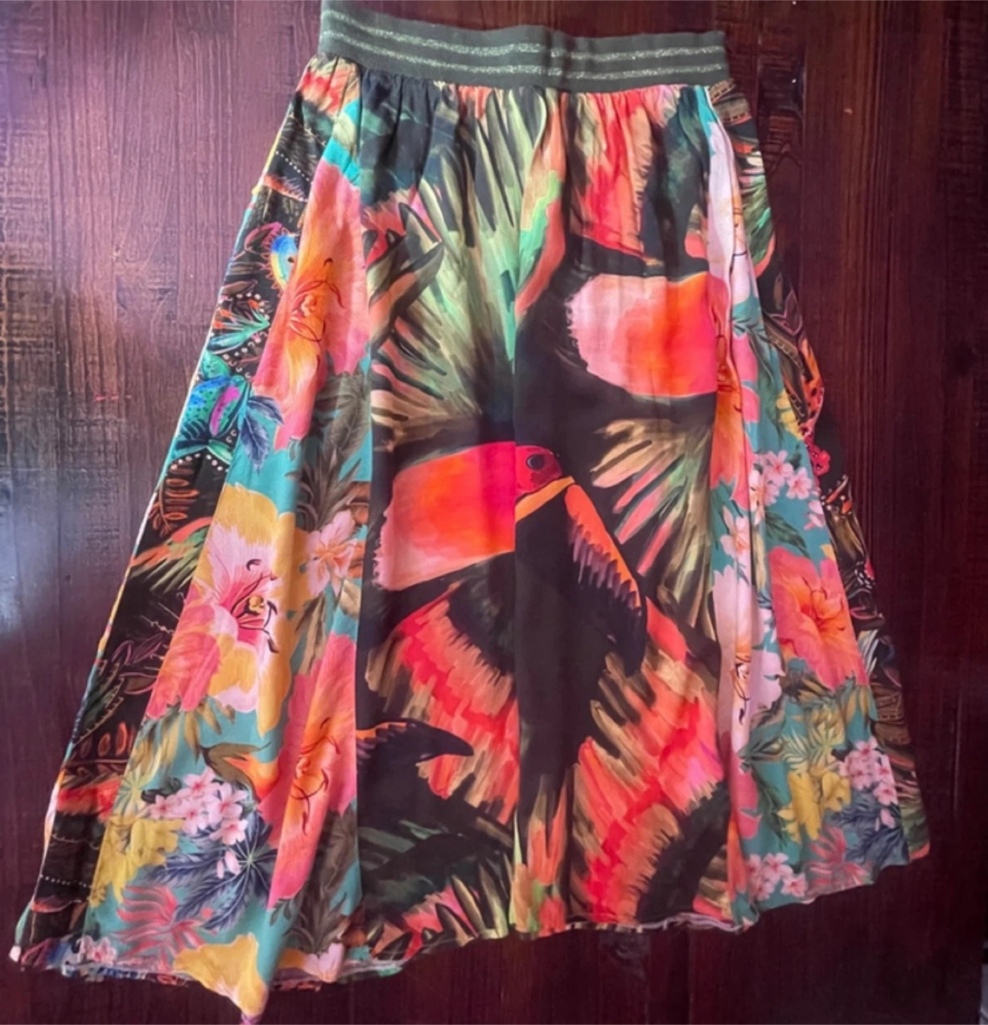 Bring the joy of Brazil into your wardrobe with this vibrant FARM Rio tropical skirt. Featuring bold toucans, lush jungle florals, and energetic colors, this lightweight viscose skirt moves beautifully and instantly brightens any outfit.