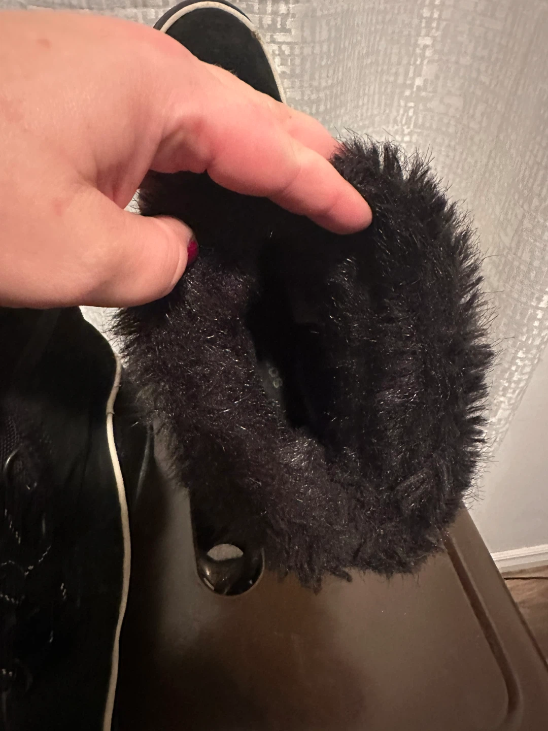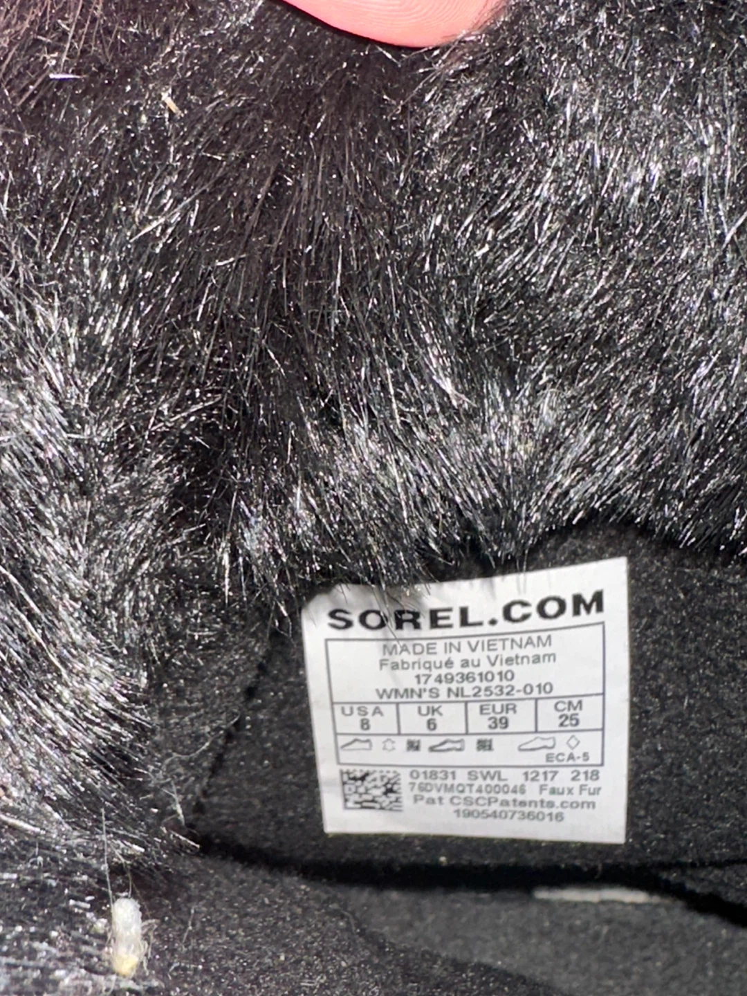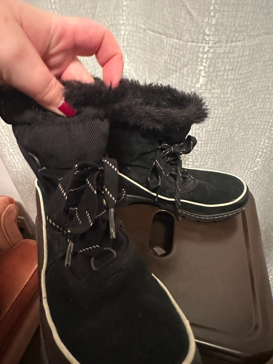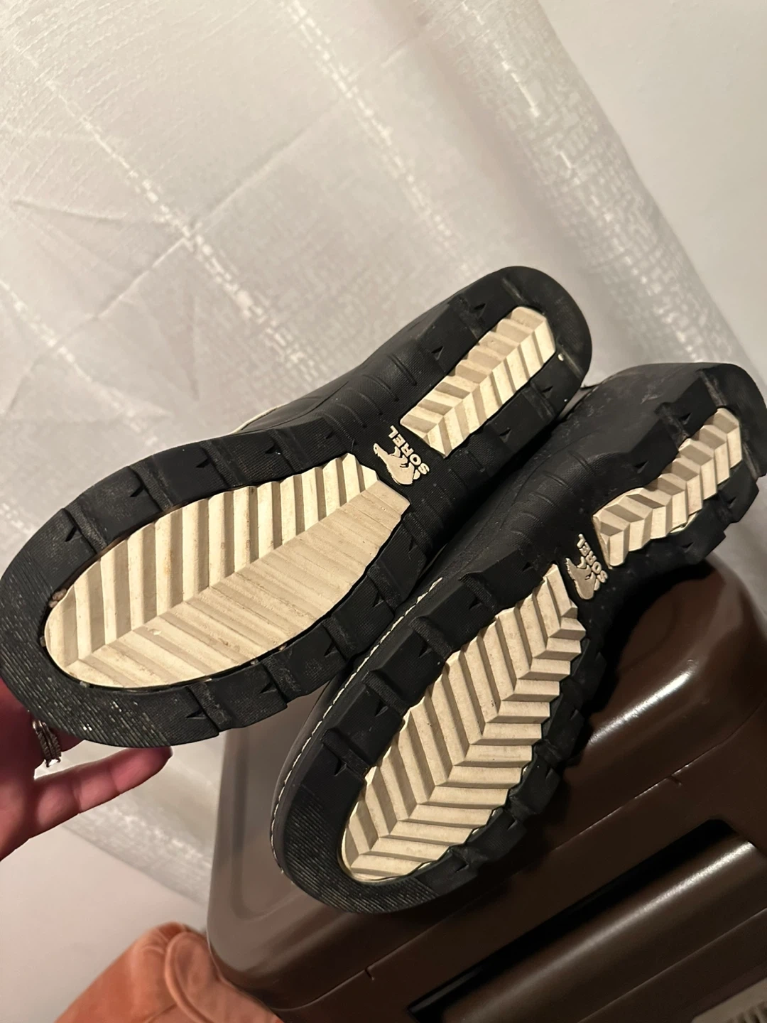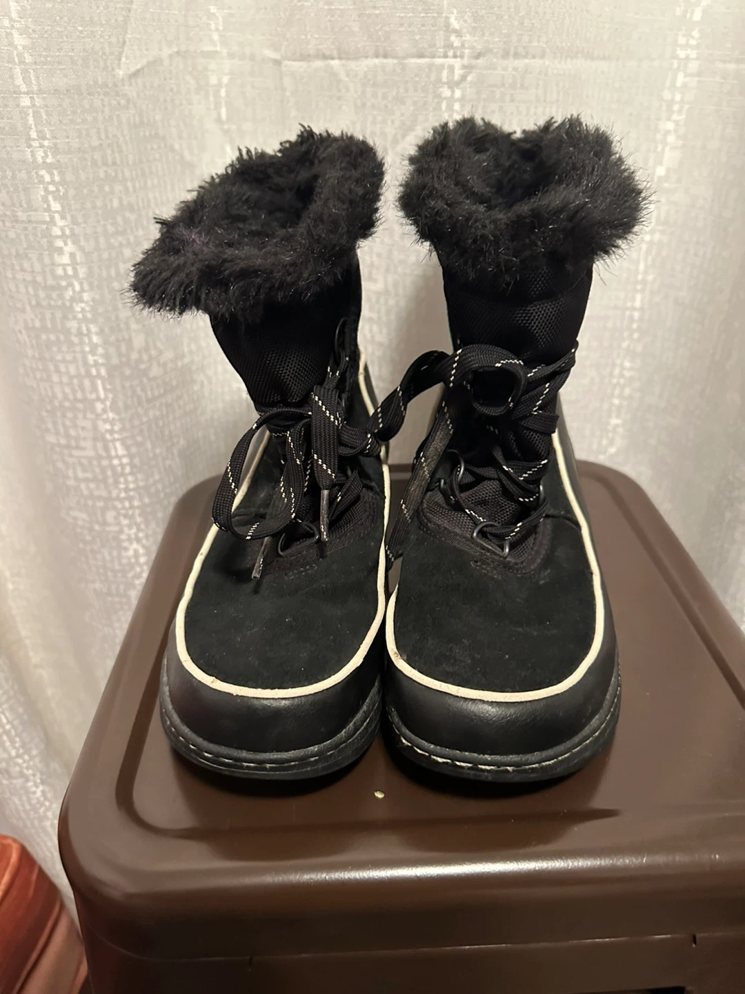 These are a pair of Sorel winter boots in black. They have a furry trim and are in good condition! Black in colour.