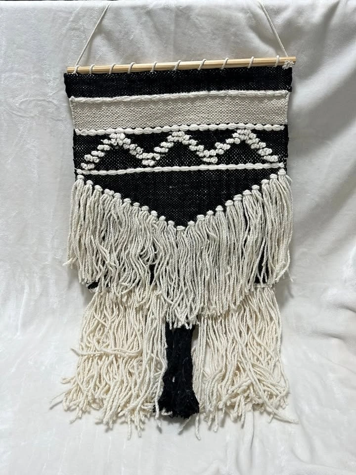 High-End Woven Wall Hanging - Black & Cream Zig Zag