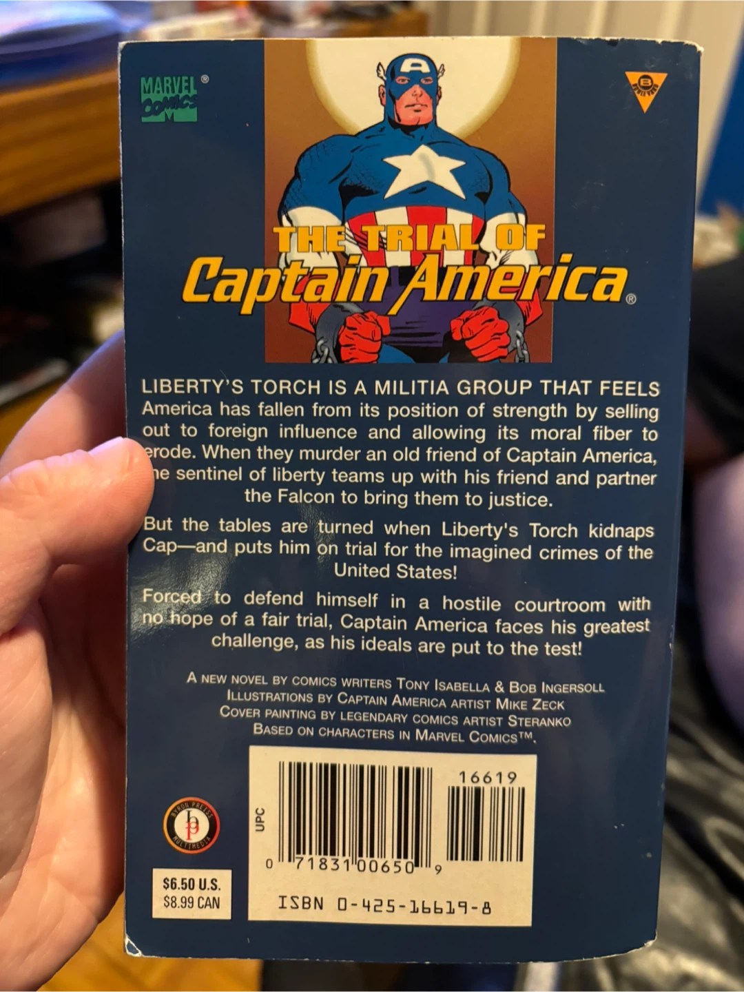Selling The Trial of Captain America novel! It's in great condition and ready for a new reader. A novel by comics writers Tony Isabella & Bob Ingersoll. Illustrations by Captain America artist Mike Zeck