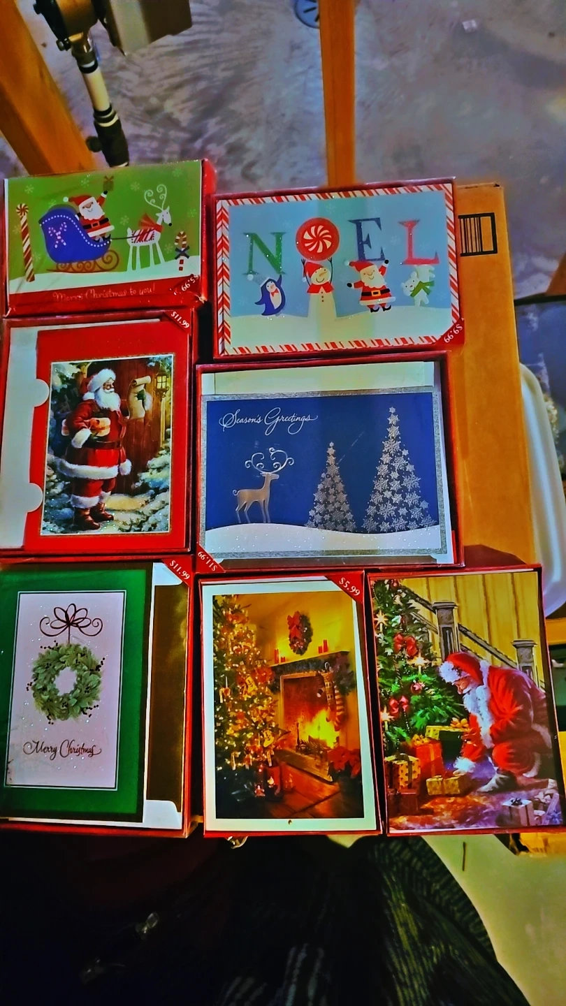 Selling a set of festive Christmas greeting cards! Each box has a unique design, from Santa scenes to winter landscapes. Perfect for spreading holiday cheer this season