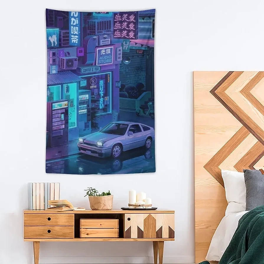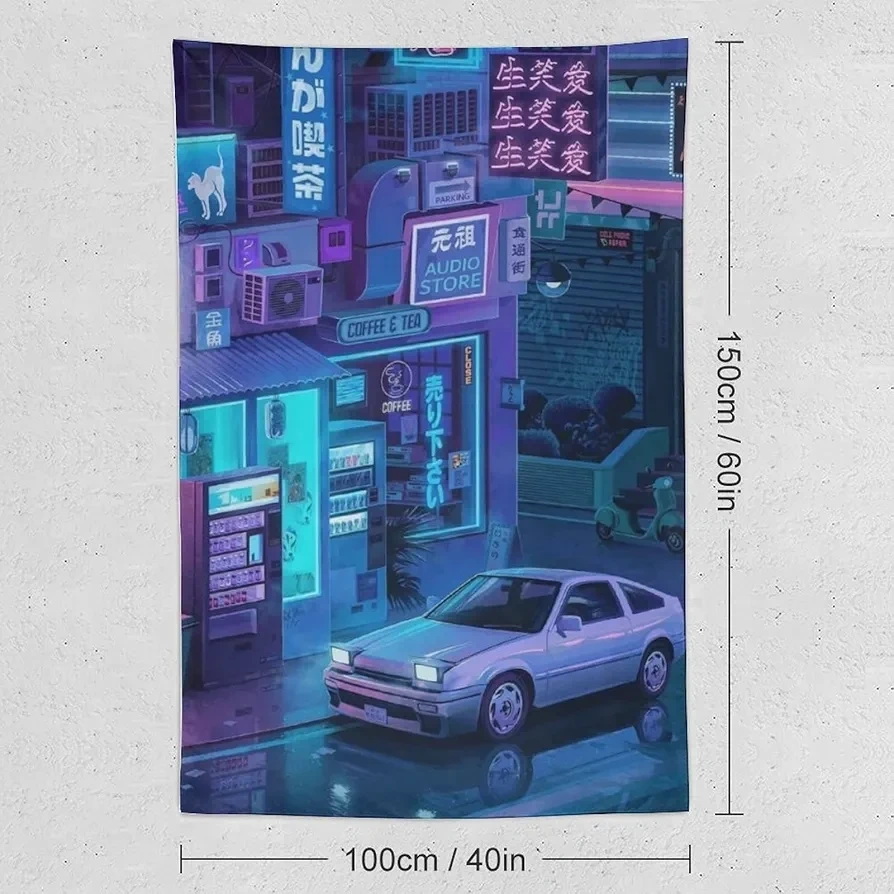 Add a touch of neon-lit Tokyo cityscapes to your space with this cool cyberpunk car wall tapestry! It measures 100cm x 150cm/40 inches x 60 inches.