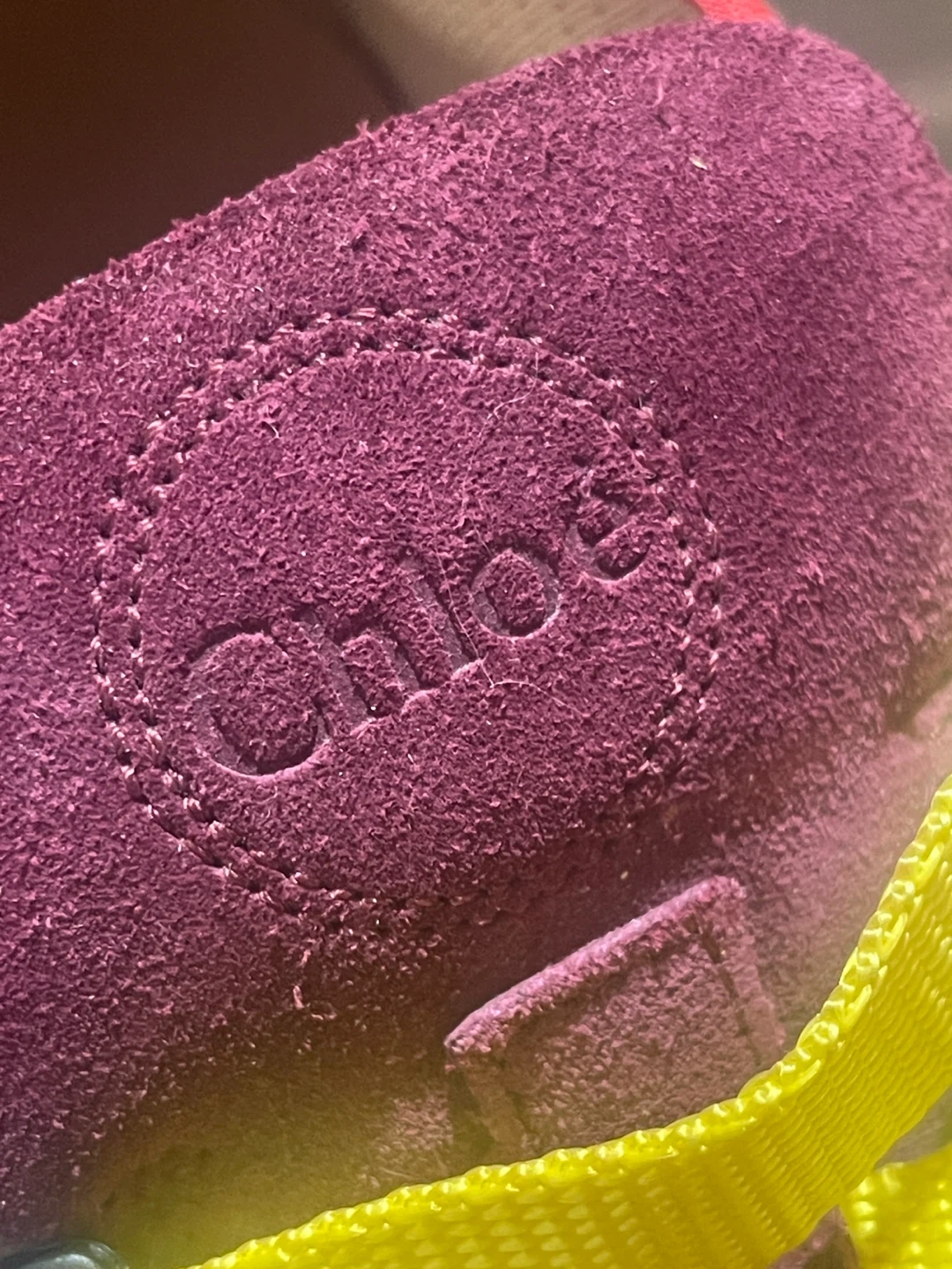 • Signature Chloé embossed suede tongue