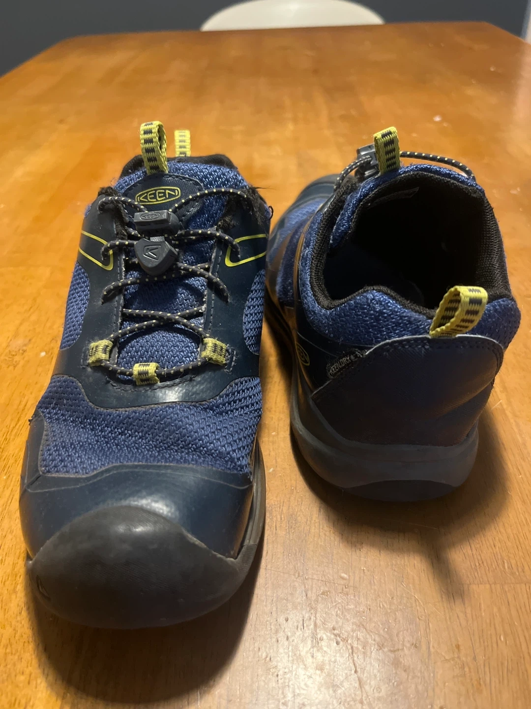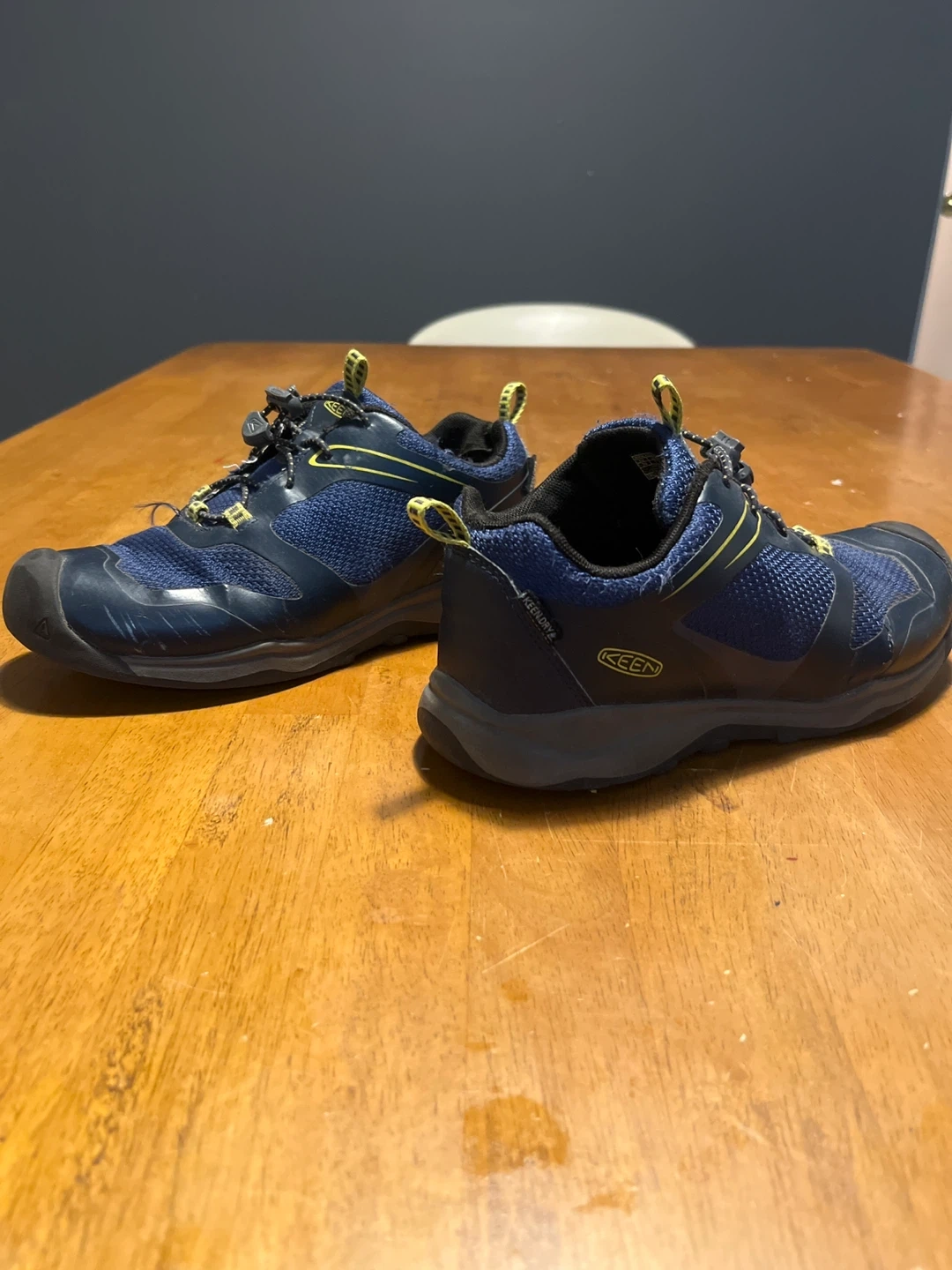 Selling a pair of Keen boy's hiking shoes in size 3 US. They are blue and have some signs of wear on the soles, but still have lots of life left in them!