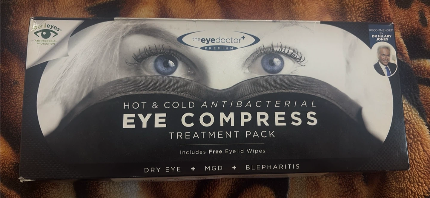 I'm selling The Eye Doctor Premium Hot & Cold Antibacterial Eye Compress Treatment Pack. It includes free eyelid wipes. It's designed for dry eye, MGD, and blepharitis.