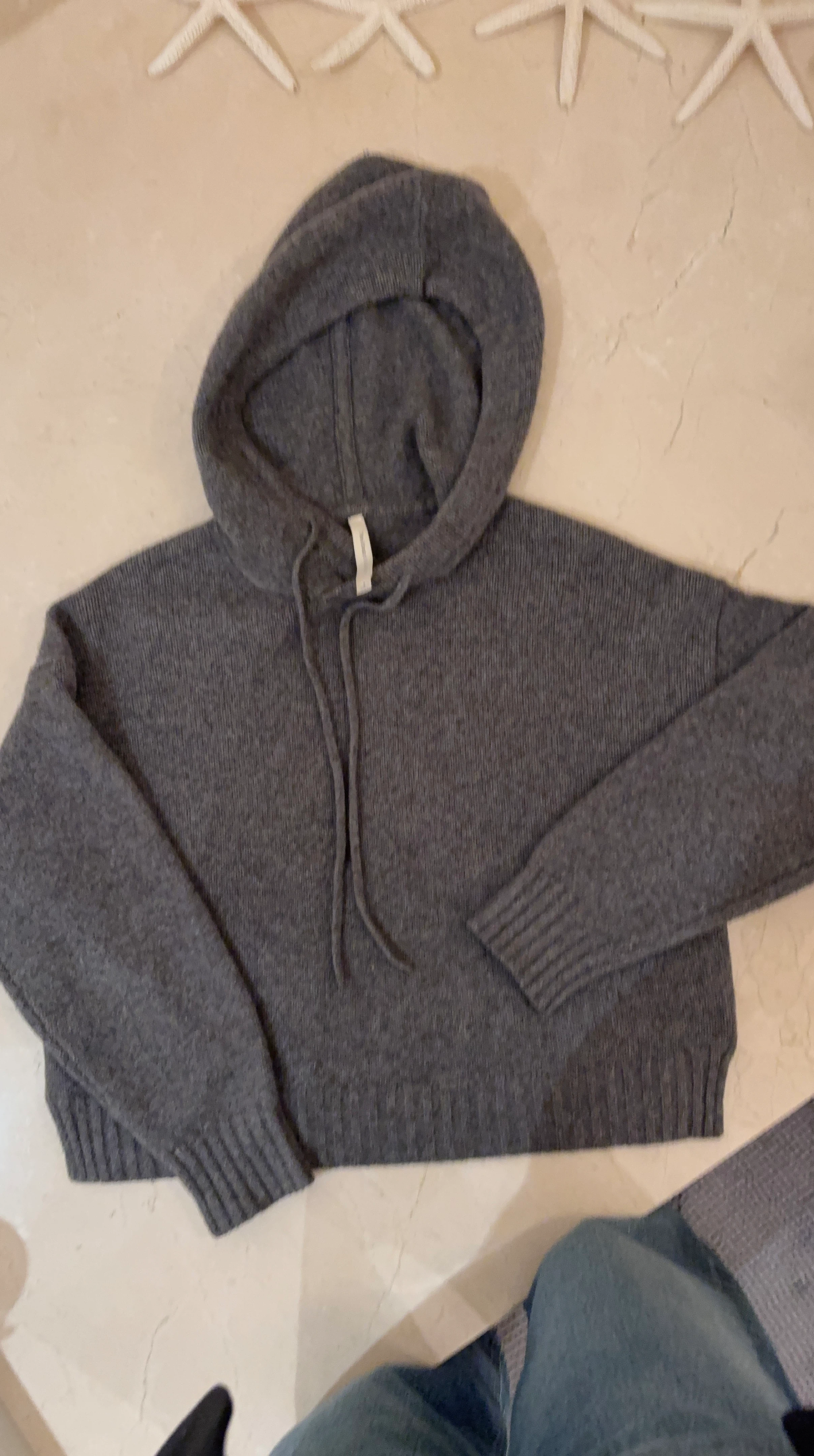 Selling a cozy grey cashmere knit hoodie! It's in pristine condition. Perfect for casual days or layering up…