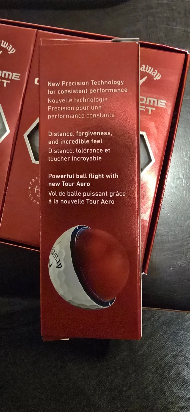Selling a set of new Callaway Chrome Soft golf balls! These offer tour performance with a soft feel. They feature new precision technology for consistent performance, distance, forgiveness, and incredible feel. Plus, they have a powerful ball flight thanks to the new Tour Aero design.