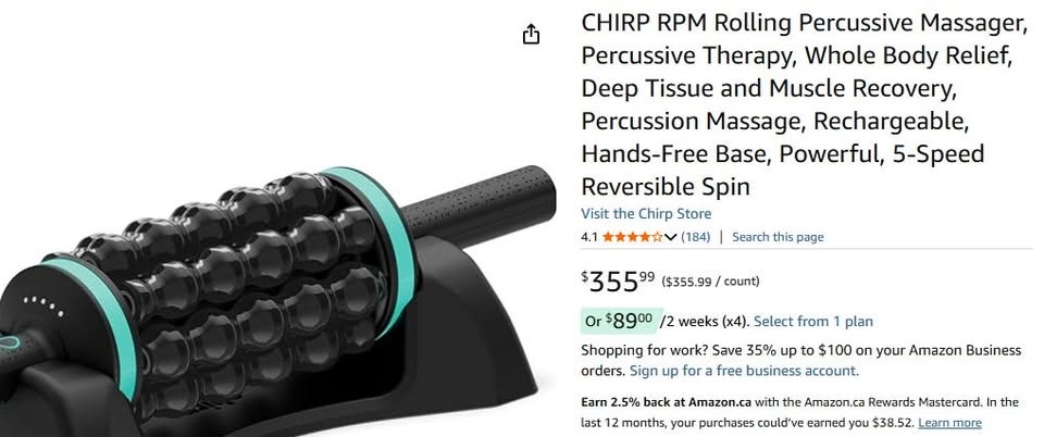 CHIRP RPM Rolling Percussive Massager, Percussive Therapy, Whole Body Relief, Deep Tissue and Muscle Recovery, Percussion Massage, Rechargeable, Hands-Free Base, Powerful, 5-Speed Reversible Spin