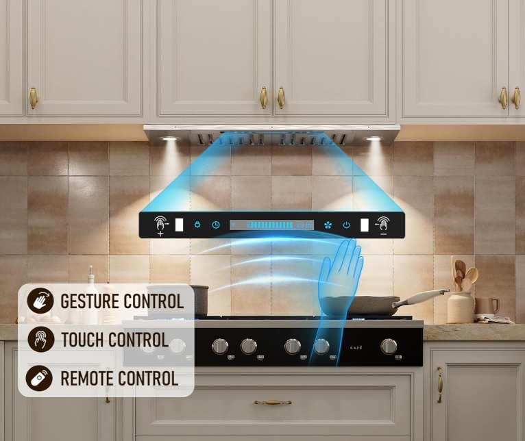 【Modern Design】: IKTCH Insert Range Hood is made from stainless steel, which has an elegant appearance and comes with remote control. The novel gesture sensing function gives you a whole new experience.