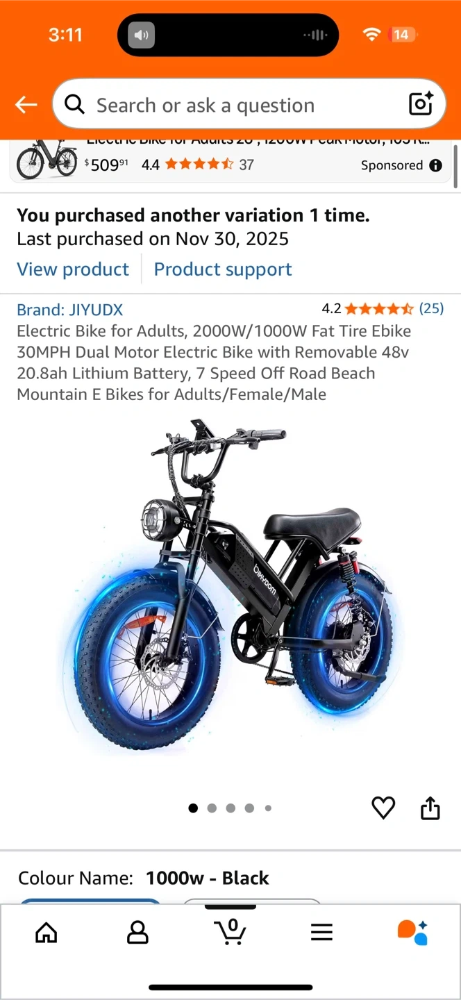 Selling a JIYUDX electric bike fat tire ebike with a 30MPH dual motor and a removable 48v 20.8ah lithium battery. Great for off-road, beach, or mountain biking!