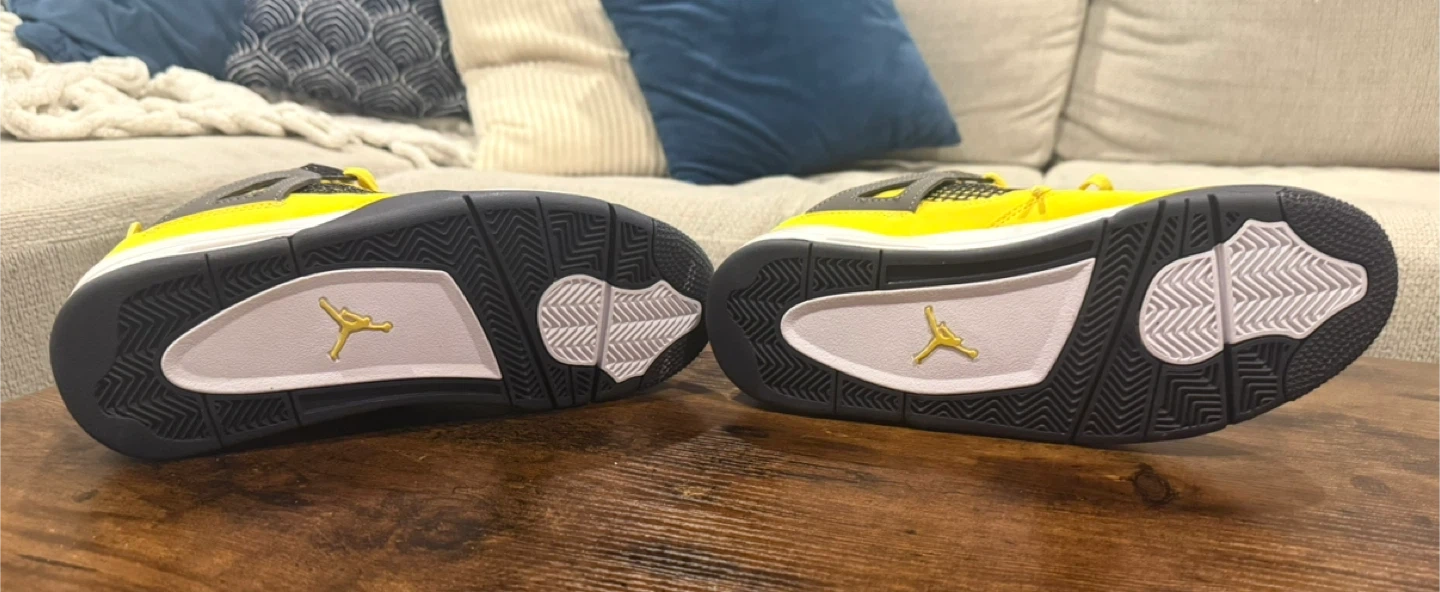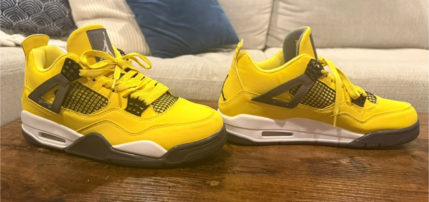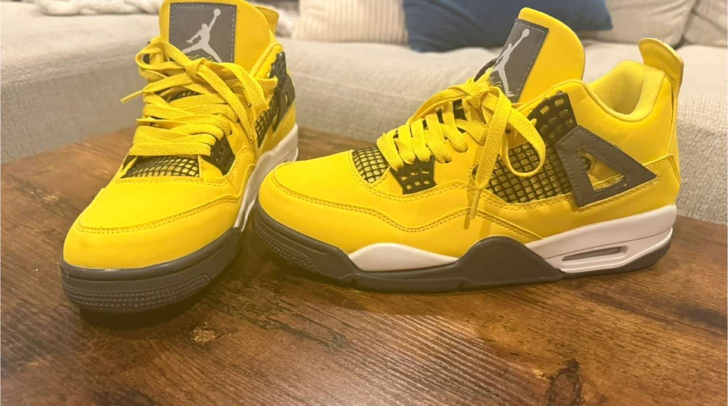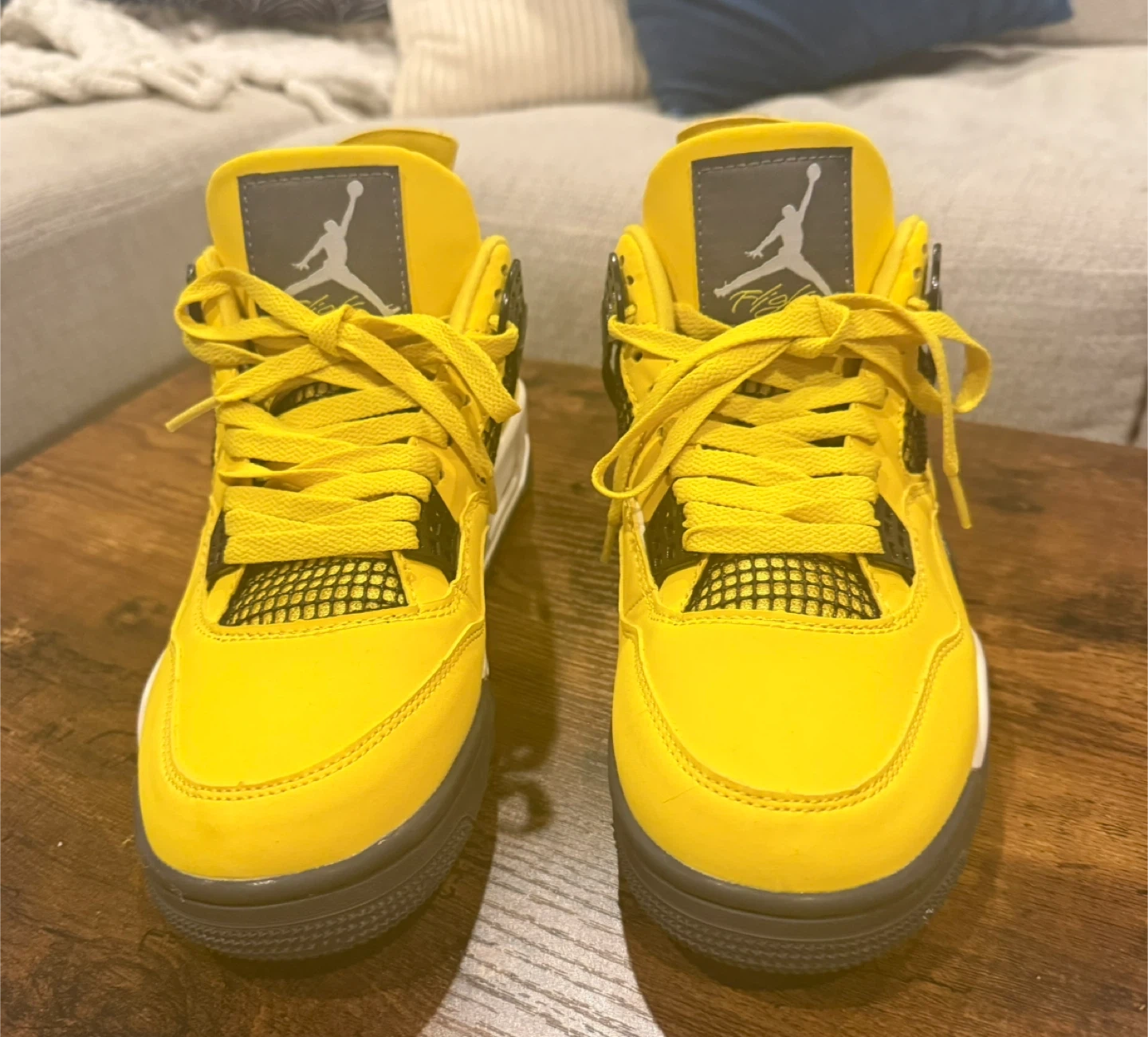 Selling a pair of Air Jordan 4 Retro in the Lightning Yellow colorway. These are in great condition and ready for a new owner! The classic design and vibrant color make them a standout addition to any sneaker collection