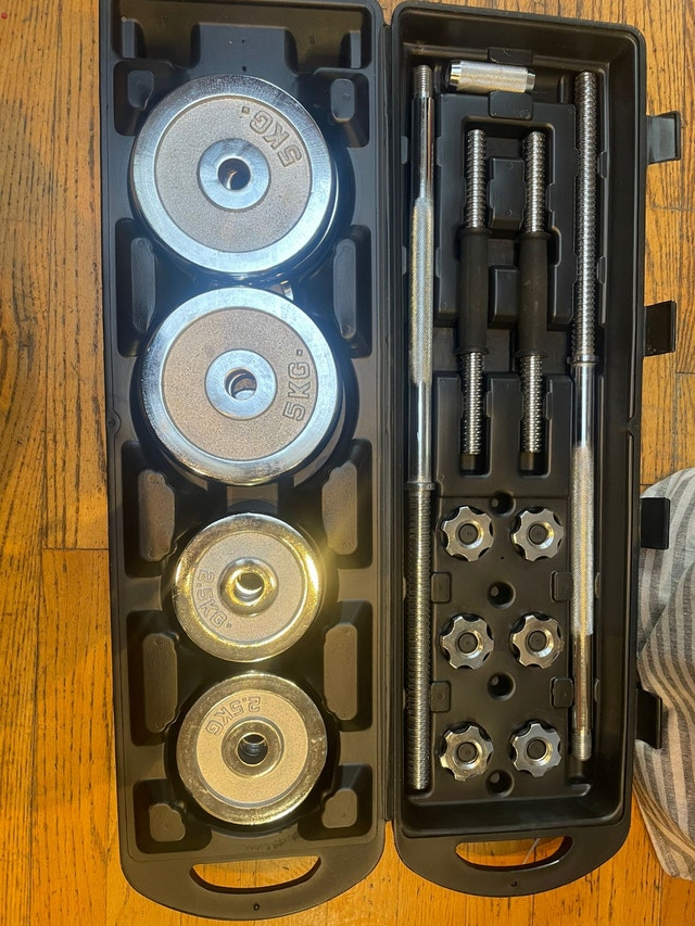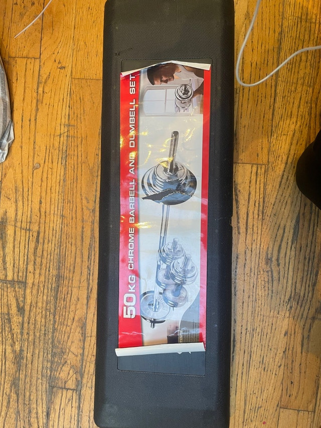 50 kg Chrome Barbell & Dumbbell Set – $100