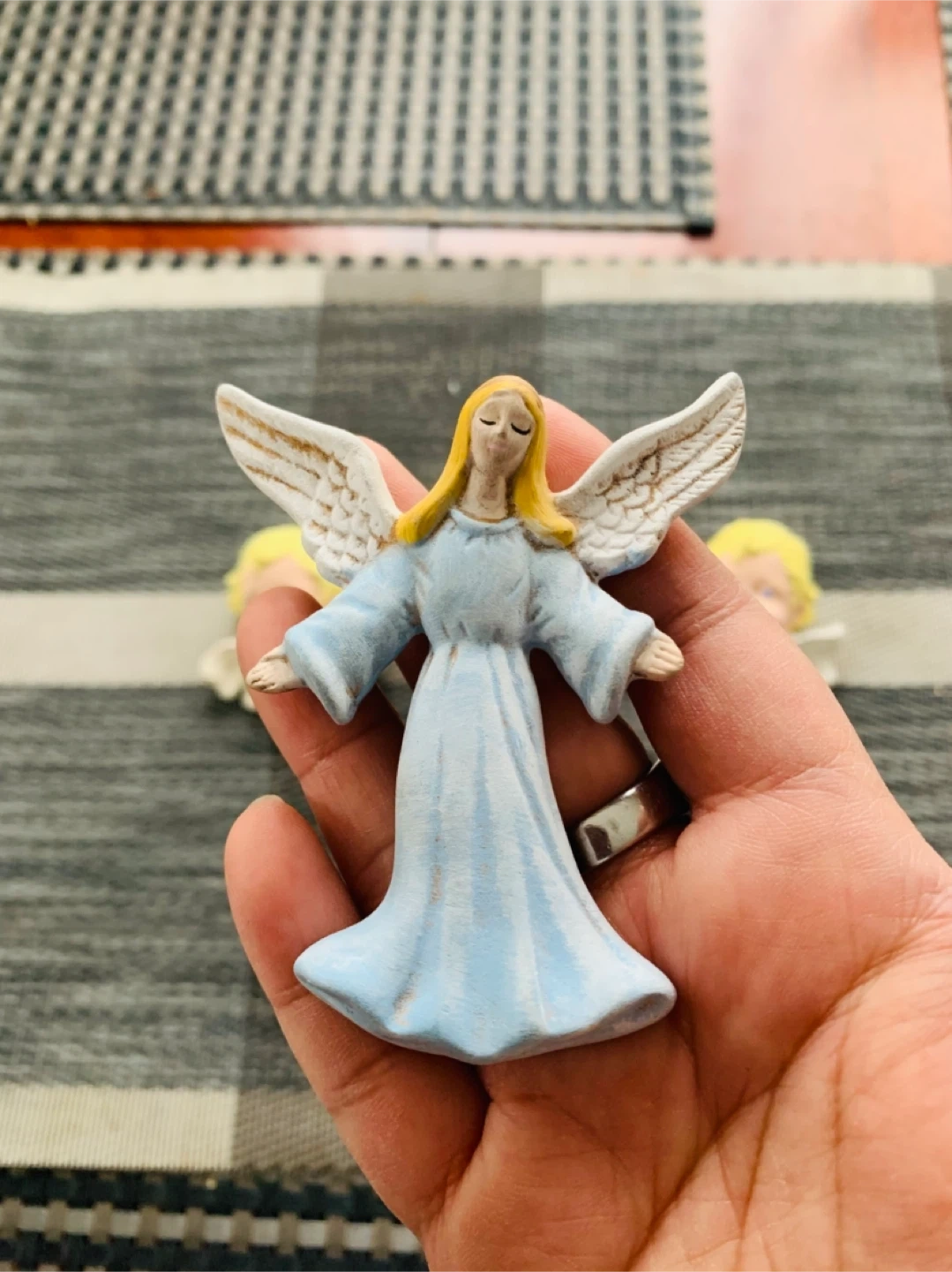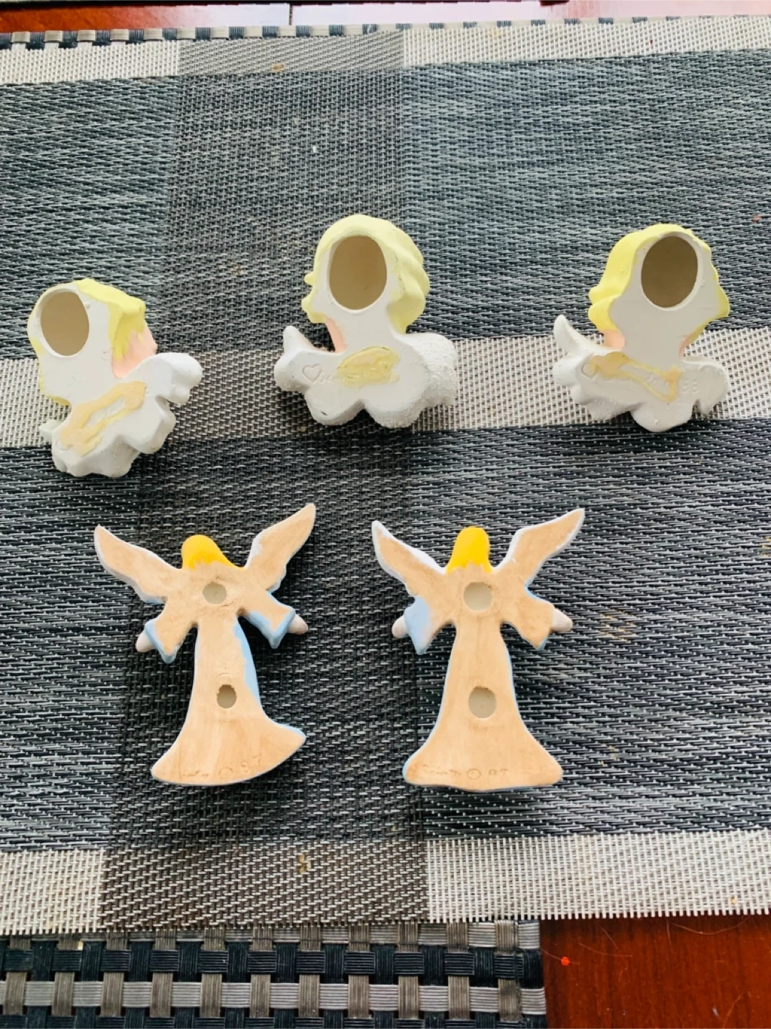 Plaster… NEW hand-painted Angels Decoration. Take all 5 for $6 CAD (firm). See pictures for measurements. Smoke free home.