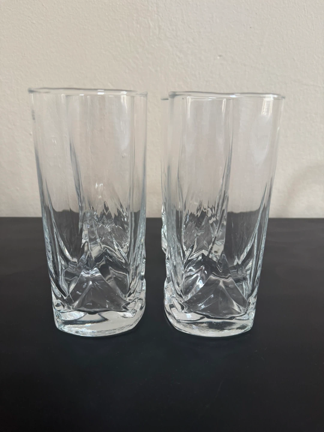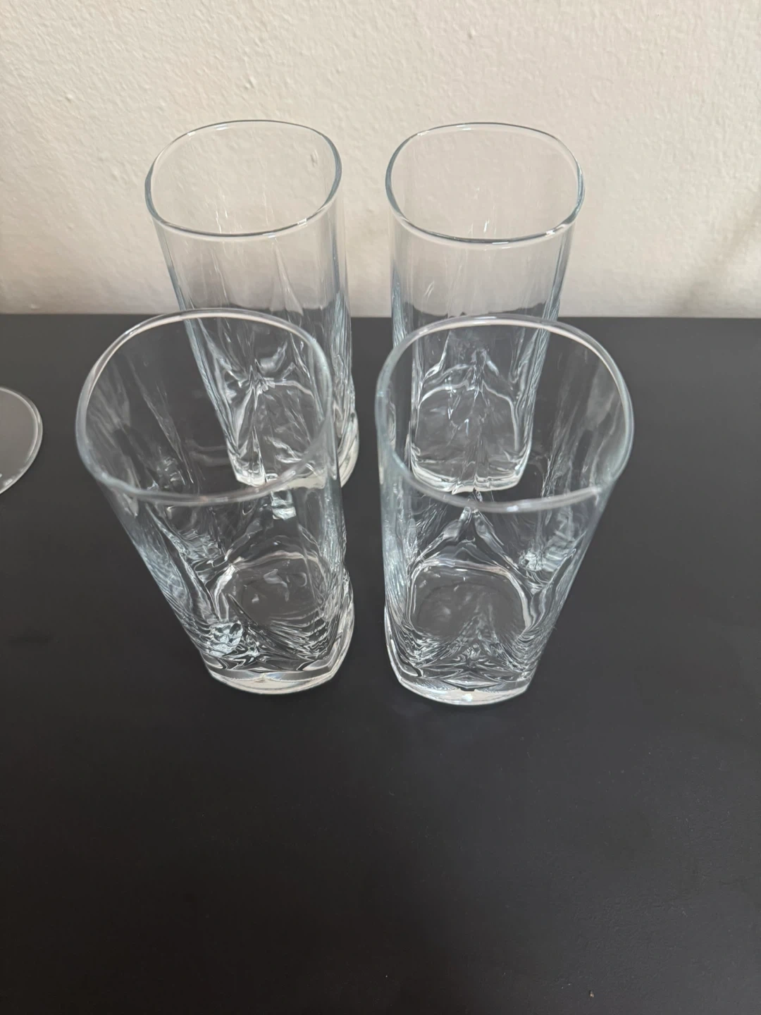 Selling a set of four drinking glasses. They have a nice, classic design that would look great in any kitchen or dining room. They're perfect for everyday use or for entertaining guests